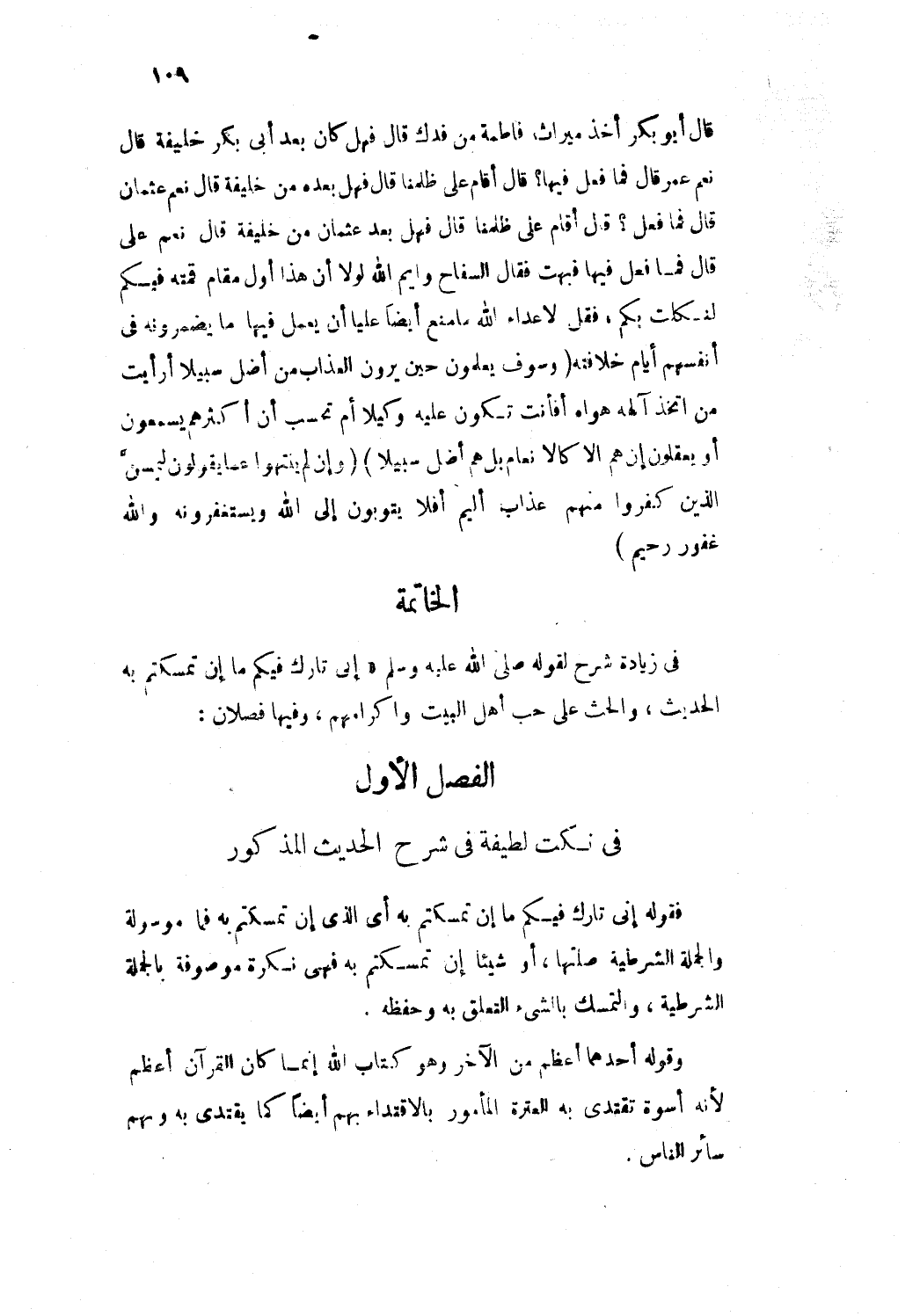 الخاتمة في زيادة شرح لقوله - صلى الله عليه وسلم - إني تارك فيكم ما إن تمسكتم به الحديث والحث على حب أهل البيت وإكرامهم