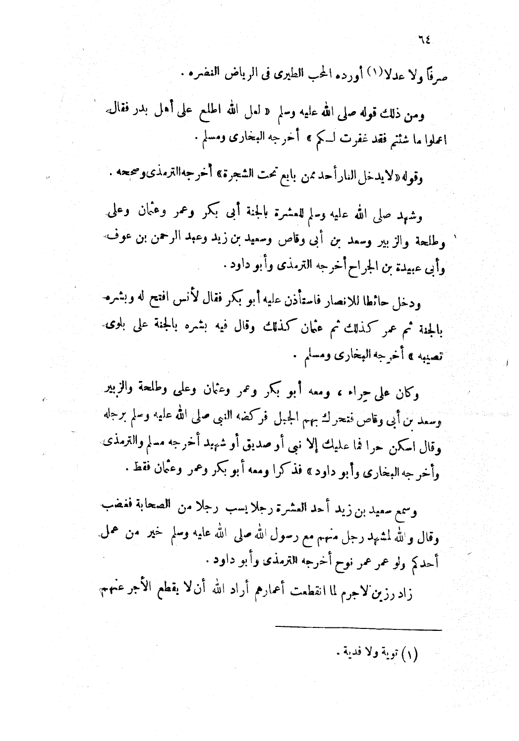 صرفا ولا عدلا" أورده المحب الطبري في الرياض النضرة.