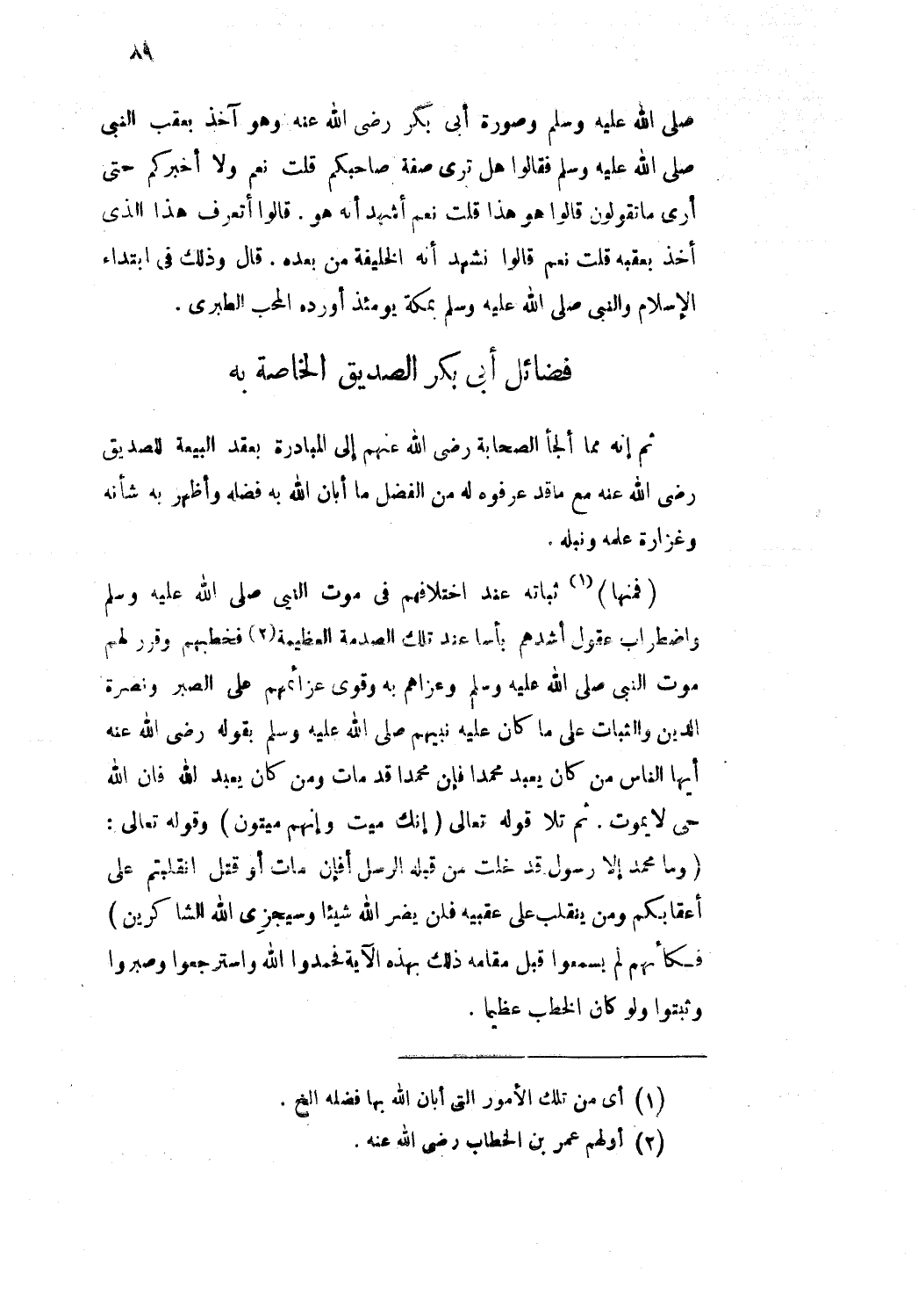 ثم إنه مما ألجأ الصحابة رضي الله عنهم إلى المبادرة بعقد البيعة للصديق رضي الله عنه مع ما قد عرفوا من الفضل مع ما أبان الله به فضله وأظهر به شأنه وغزارة علمه ونبله: