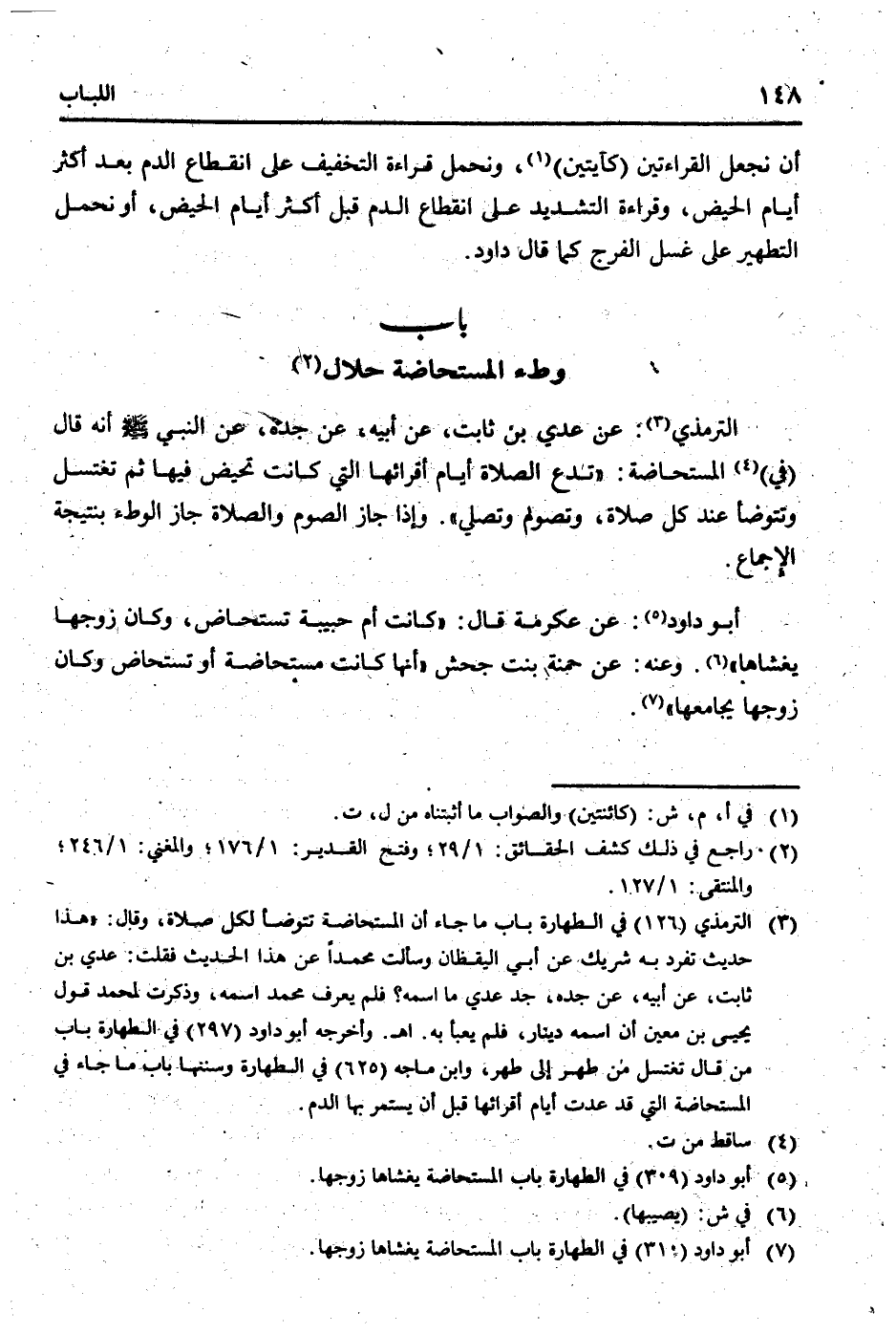 أَبُو دَاوُد: عَن عِكْرِمَة قَالَ: " كَانَت أم حَبِيبَة تستحاض، وَكَانَ زَوجهَا يَغْشَاهَا. وَعنهُ: عَن حمْنَة بنت جحش " أَنَّهَا كَانَت مُسْتَحَاضَة أَو تستحاض وَكَانَ زَوجهَا يُجَامِعهَا ".