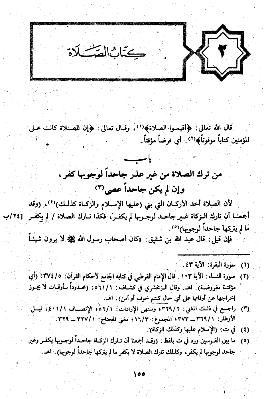 فَإِن قيل: قَالَ عبد الله بن شَقِيق: " كَانَ أَصْحَاب رَسُول الله [صلى الله عَلَيْهِ وَسلم] لَا يرَوْنَ شَيْئا
