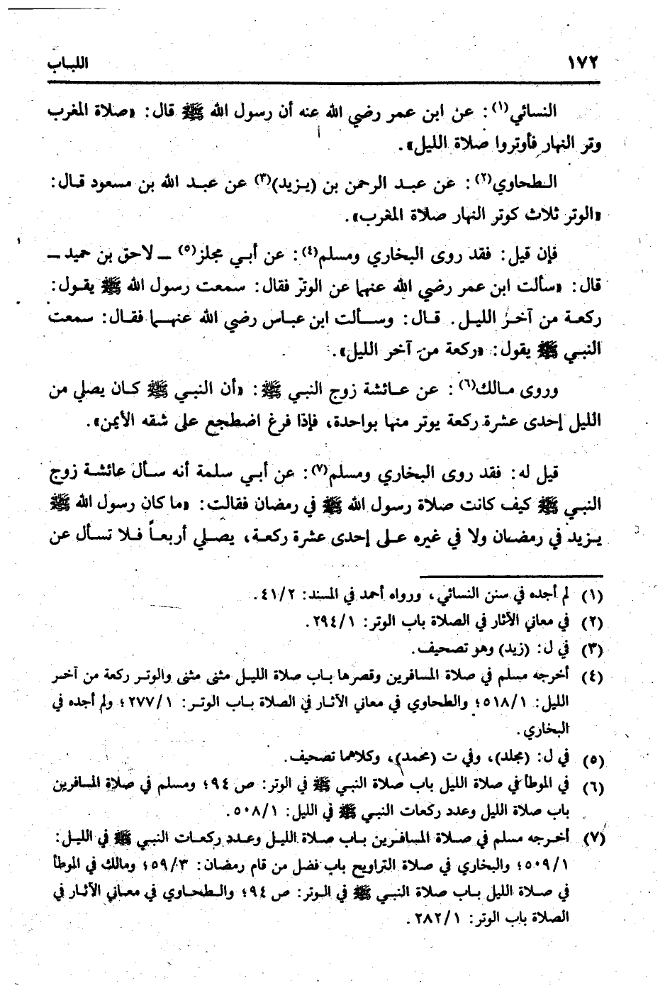 النَّسَائِيّ: عَن ابْن عمر رَضِي الله عَنهُ أَن رَسُول الله [صلى الله عَلَيْهِ وَسلم] قَالَ: " صَلَاة الْمغرب وتر النَّهَار فأوتروا صَلَاة اللَّيْل ".