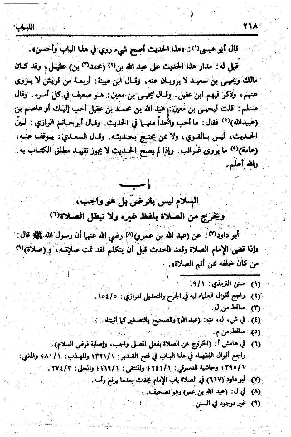 (بَاب السَّلَام لَيْسَ بِفَرْض بل هُوَ وَاجِب، وَيخرج من الصَّلَاة بِلَفْظ غَيره وَلَا تبطل الصَّلَاة)