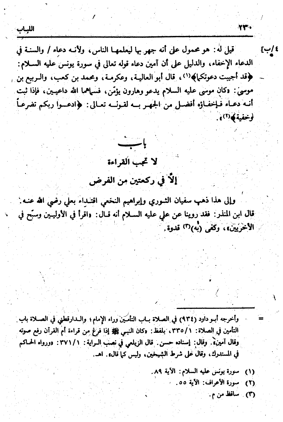 (بَاب لَا تجب الْقِرَاءَة إِلَّا فِي رَكْعَتَيْنِ من الْفَرْض)
