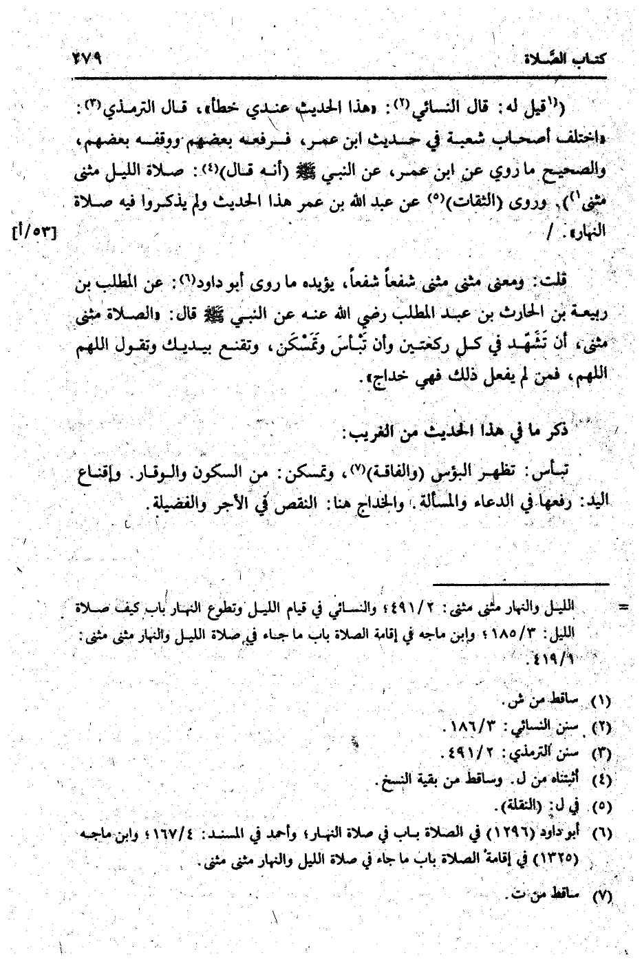 (قيل لَهُ: قَالَ النَّسَائِيّ: " هَذَا الحَدِيث عِنْدِي خطأ "، قَالَ التِّرْمِذِيّ: " اخْتلف أَصْحَاب شُعْبَة فِي حَدِيث ابْن عمر، فرفعه بَعضهم وَوَقفه بَعضهم، وَالصَّحِيح مَا رُوِيَ عَن ابْن عمر، عَن النَّبِي [صلى الله عَلَيْهِ وَسلم] (أَنه قَالَ) : صَلَاة اللَّيْل مثنى مثنى) . وروى (الثِّقَات) عَن عبد الله بن عمر هَذَا الحَدِيث وَلم يذكرُوا فِيهِ صَلَاة النَّهَار ". /