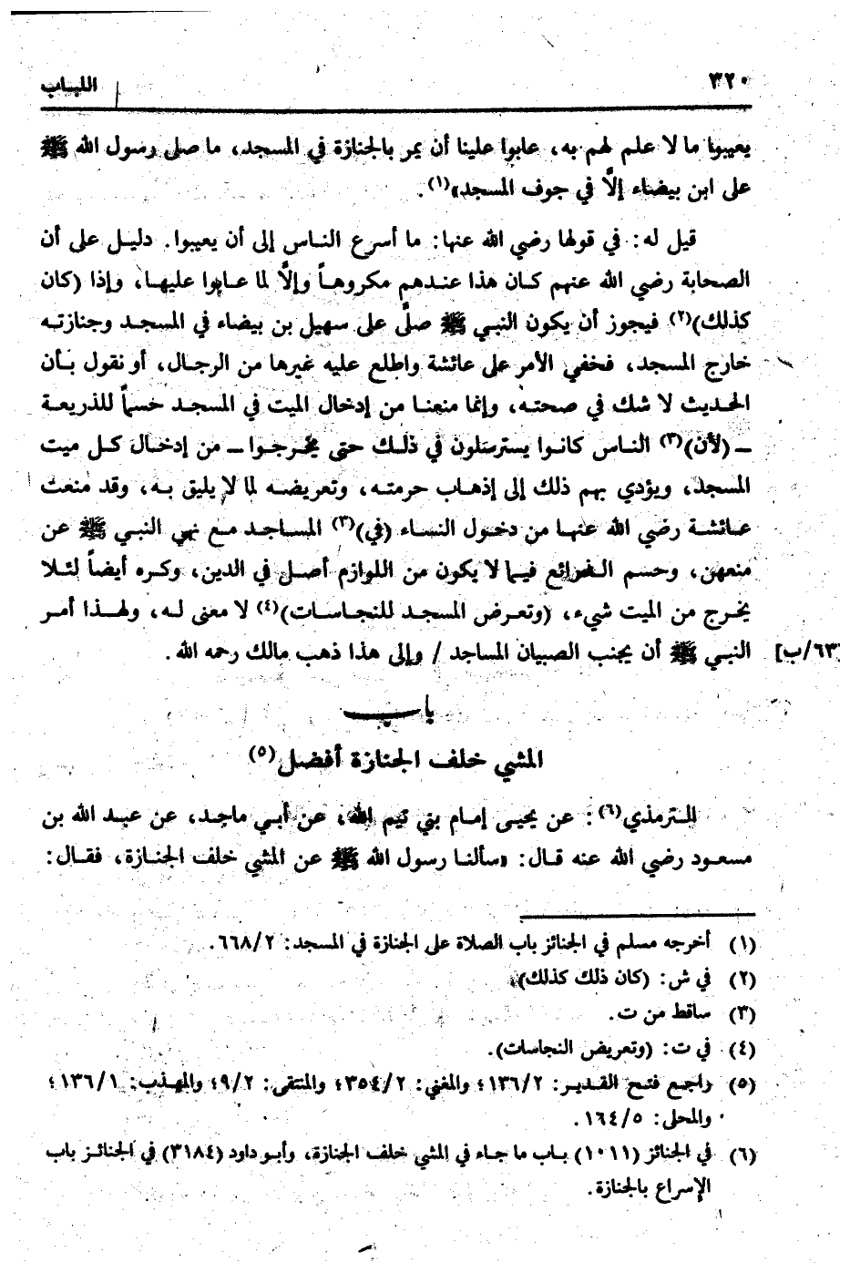 التِّرْمِذِيّ: عَن يحيى إِمَام بني تيم الله، عَن أبي ماجد، عَن عبد الله بن مَسْعُود رَضِي الله عَنهُ قَالَ: " سَأَلنَا رَسُول الله [صلى الله عَلَيْهِ وَسلم] عَن الْمَشْي خلف الْجِنَازَة، فَقَالَ: