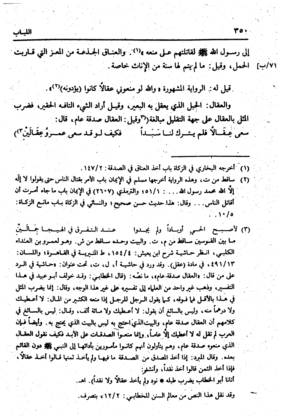 إِلَى رَسُول الله [صلى الله عَلَيْهِ وَسلم] لقاتلتهم على مَنعه ". والعناق الْجَذعَة من الْمعز الَّتِي قاربت الْحمل، وَقيل: مَا لم يتم لَهَا سنة من الْإِنَاث خَاصَّة. /