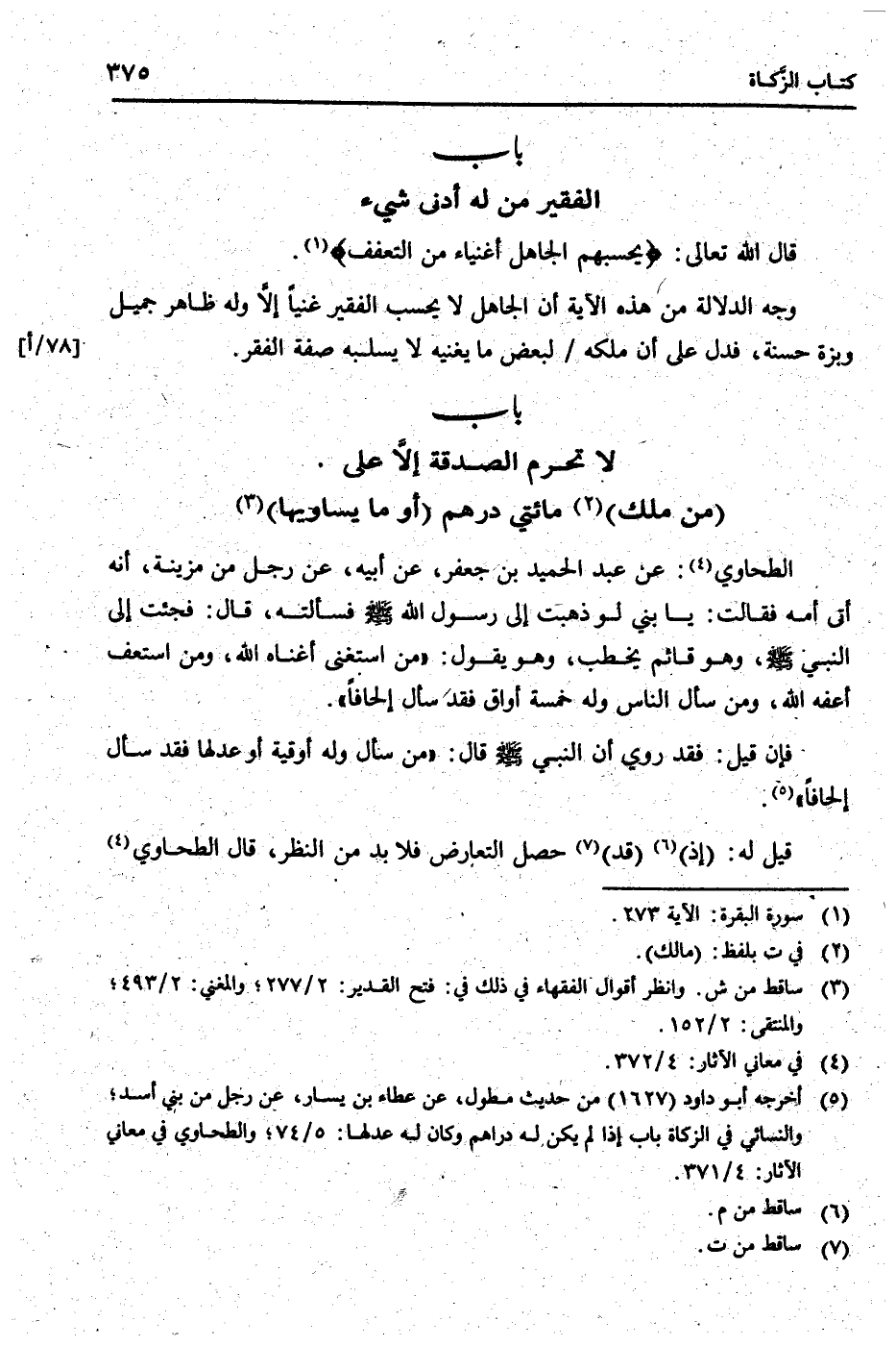 وَجه الدّلَالَة من هَذِه الْآيَة أَن الْجَاهِل لَا يحْسب الْفَقِير غَنِيا إِلَّا وَله ظَاهر جميل وبزة حَسَنَة، فَدلَّ على أَن ملكه / لبَعض مَا يُغْنِيه لَا يسلبه صفة الْفقر.