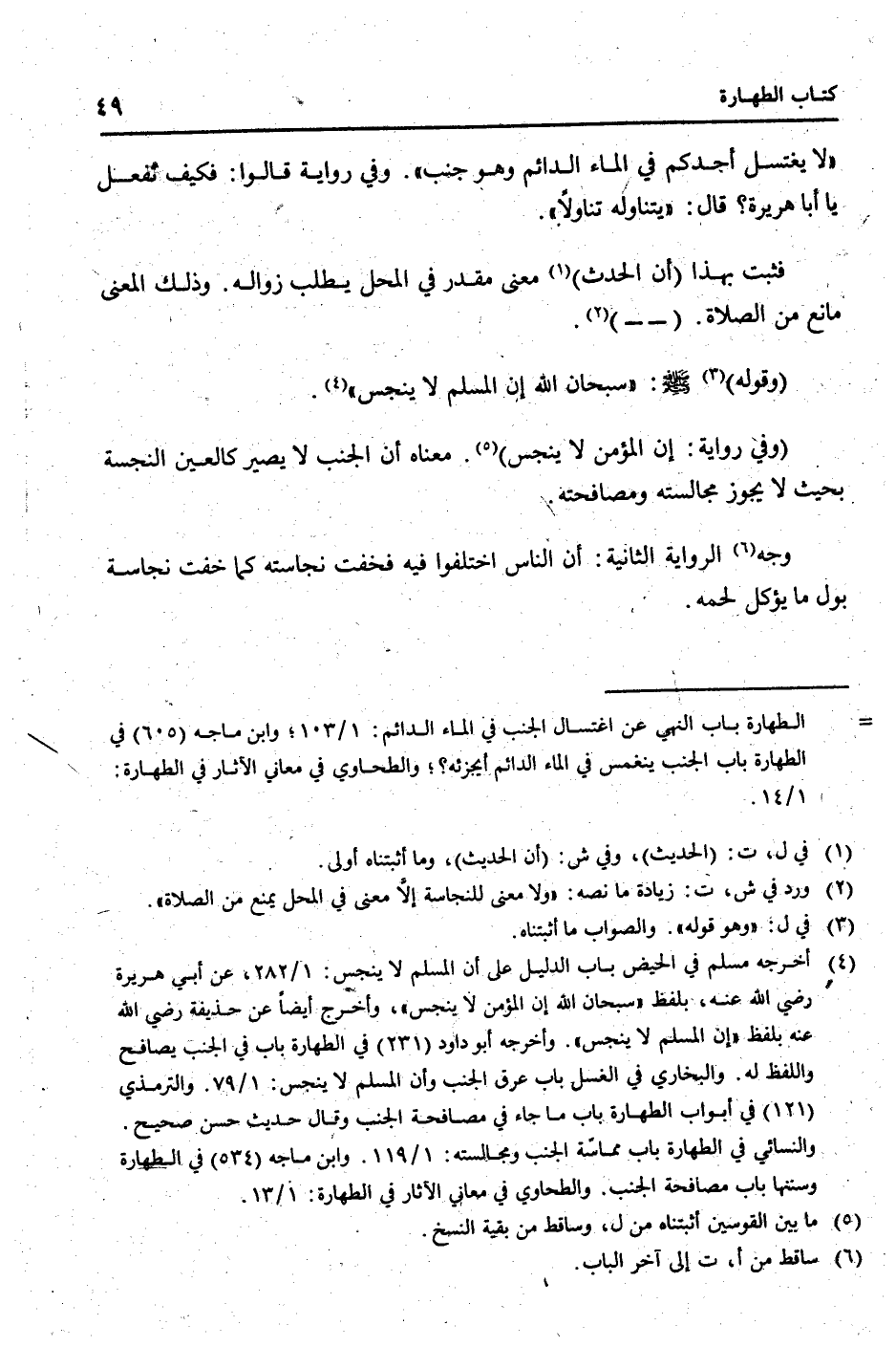 (وَقَوله) [صلى الله عَلَيْهِ وَسلم] : " سُبْحَانَ الله إِن الْمُسلم لَا ينجس ".