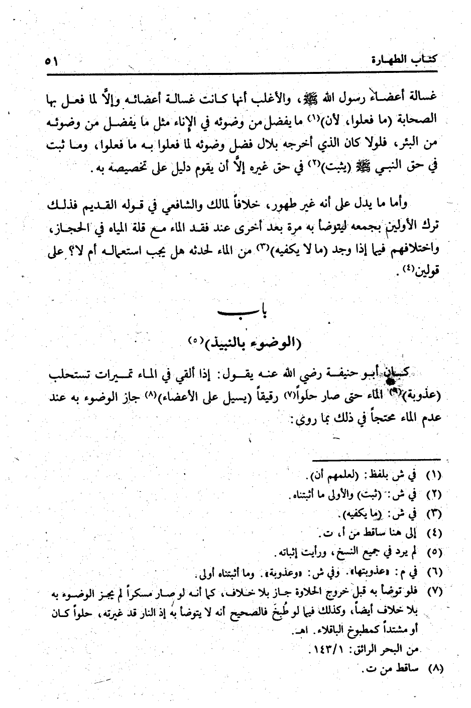 وَأما مَا يدل على أَنه غير طهُور، خلافًا لمَالِك وَالشَّافِعِيّ فِي قَوْله الْقَدِيم فَذَلِك ترك الْأَوَّلين بجمعه ليتوضأ بِهِ مرّة بعد أُخْرَى عِنْد فقد المَاء مَعَ قلَّة الْمِيَاه فِي الْحجاز، وَاخْتِلَافهمْ فِيمَا إِذا وجد (مَا لَا يَكْفِيهِ) من المَاء لحدثه هَل يجب اسْتِعْمَاله أم لَا؟ على قَوْلَيْنِ.