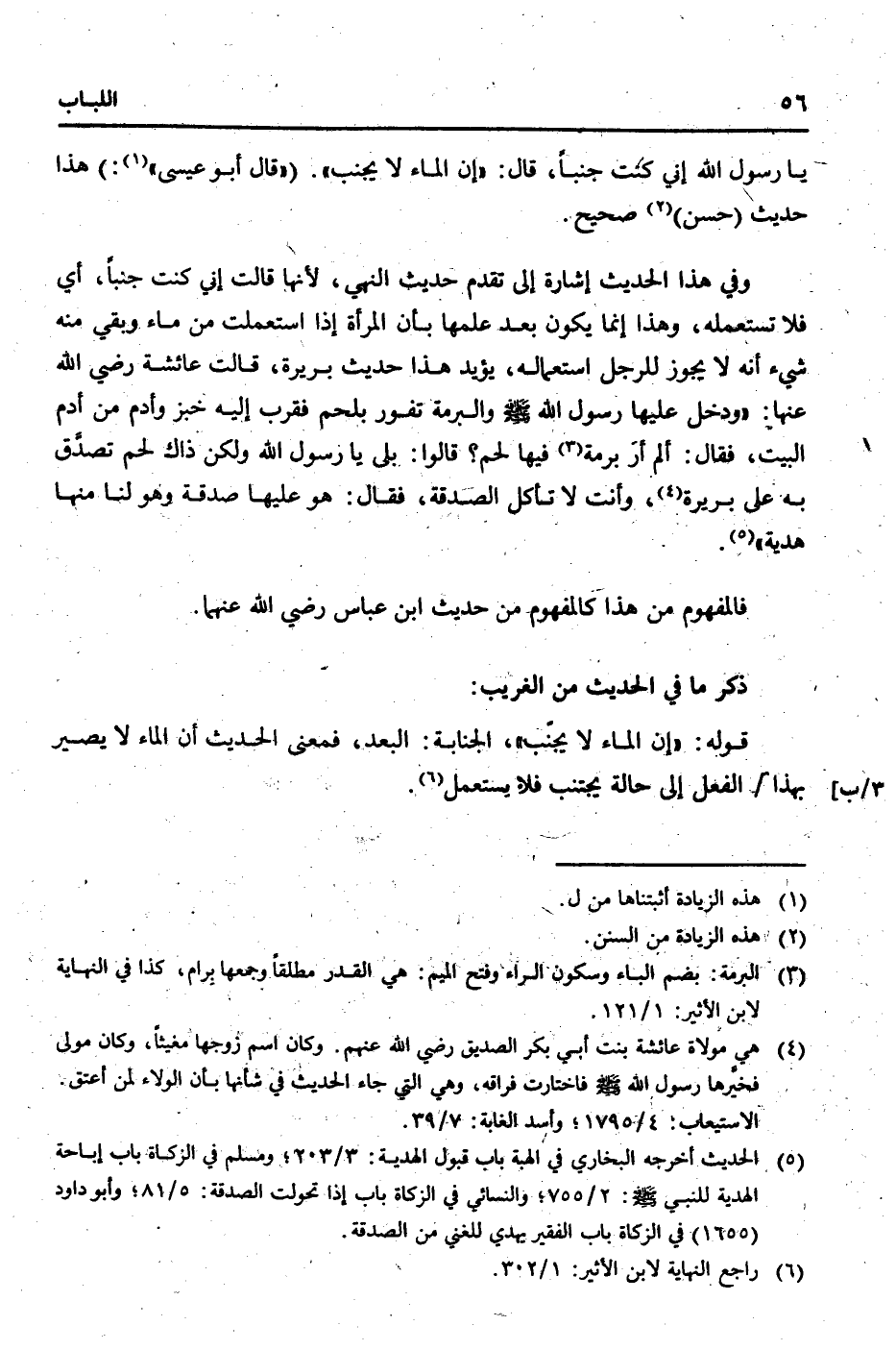 يَا رَسُول الله إِنِّي كنت جنبا، قَالَ: " إِن المَاء لَا يجنب ". (" قَالَ أَبُو عِيسَى ":) هَذَا حَدِيث (حسن) صَحِيح.