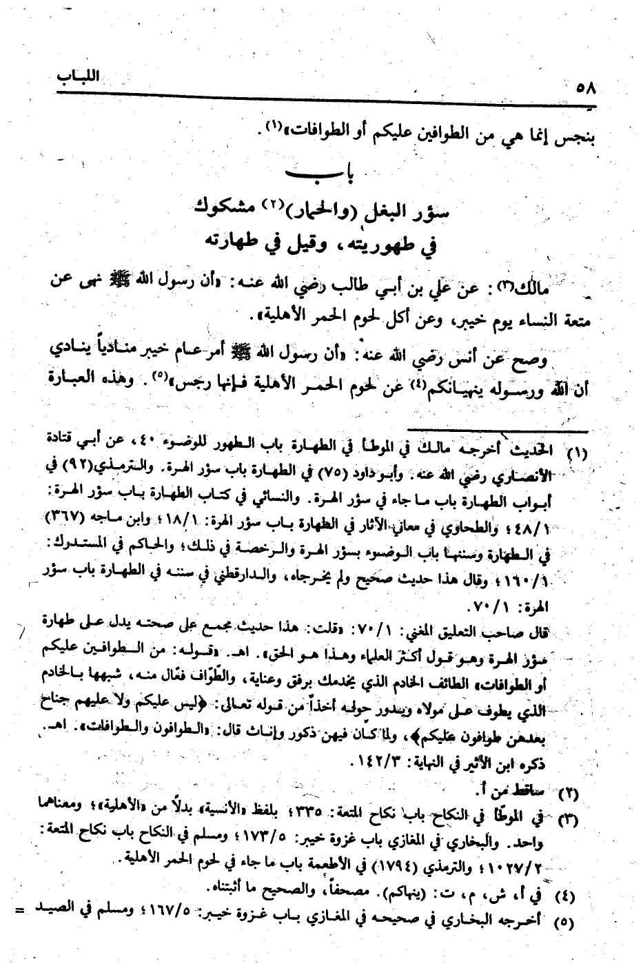 (بَاب سُؤْر الْبَغْل (وَالْحمار) مَشْكُوك فِي طهوريته، وَقيل فِي طَهَارَته)