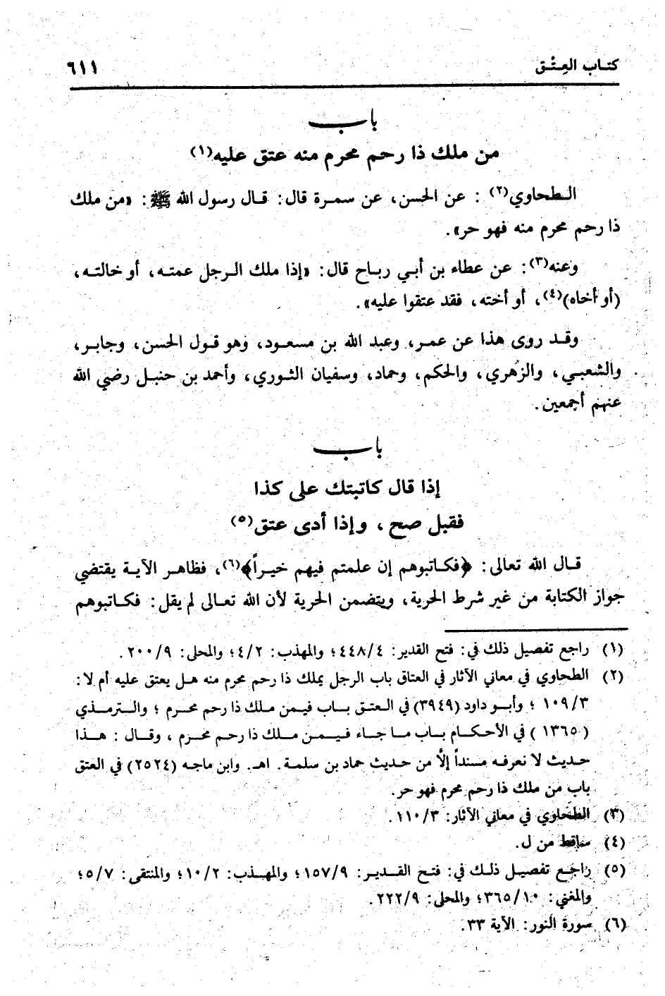 الطَّحَاوِيّ: عَن الْحسن، عَن سَمُرَة قَالَ: قَالَ رَسُول الله [صلى الله عَلَيْهِ وَسلم] : " من ملك ذَا رحم محرم مِنْهُ فَهُوَ حر ".