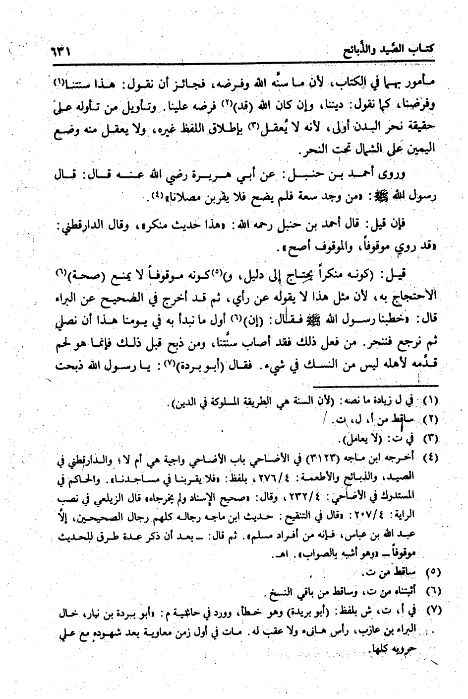 وروى أَحْمد بن حَنْبَل: عَن أبي هُرَيْرَة رَضِي الله عَنهُ قَالَ: قَالَ رَسُول الله [صلى الله عَلَيْهِ وَسلم] : " من وجد سَعَة فَلم يضح فَلَا يقربن مصلانا ".
