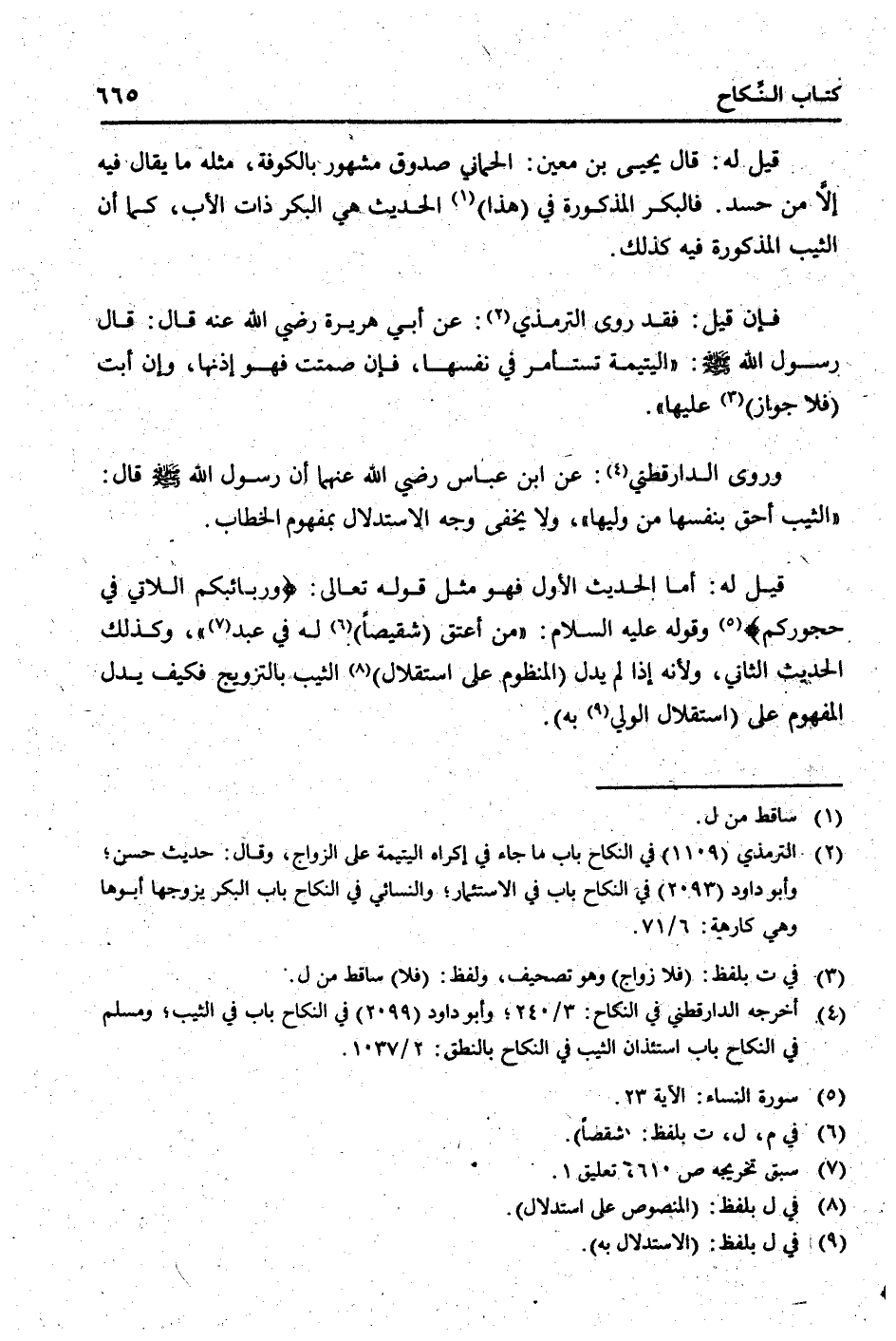 قيل لَهُ: قَالَ يحيى بن معِين: الْحمانِي صَدُوق مَشْهُور بِالْكُوفَةِ، مثله مَا يُقَال فِيهِ إِلَّا من حسد. فالبكر الْمَذْكُورَة فِي (هَذَا) الحَدِيث هِيَ الْبكر ذَات الْأَب، كَمَا أَن الثّيّب الْمَذْكُورَة فِيهِ كَذَلِك.