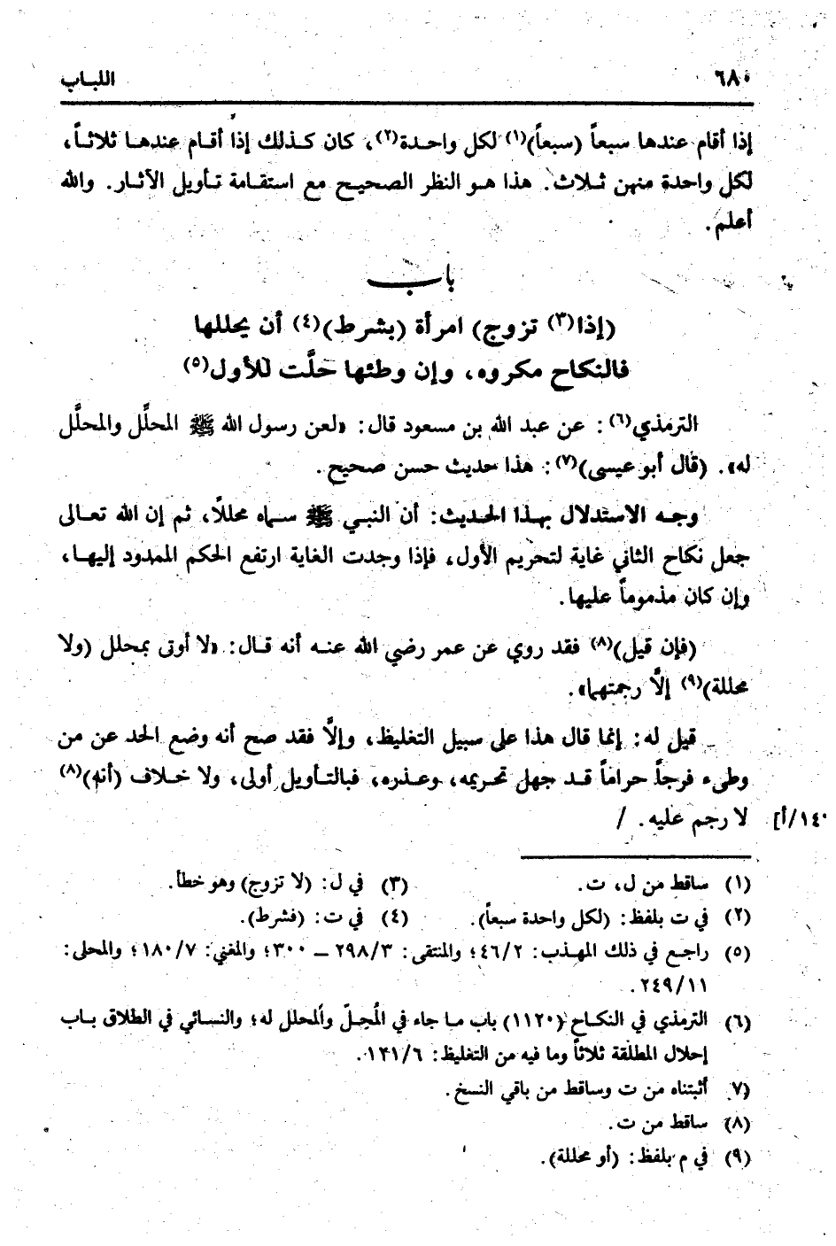 التِّرْمِذِيّ: عَن عبد الله بن مَسْعُود قَالَ: " لعن رَسُول الله [صلى الله عَلَيْهِ وَسلم] الْمُحَلّل والمحلل لَهُ ". (قَالَ أَبُو عِيسَى) : هَذَا حَدِيث حسن صَحِيح.