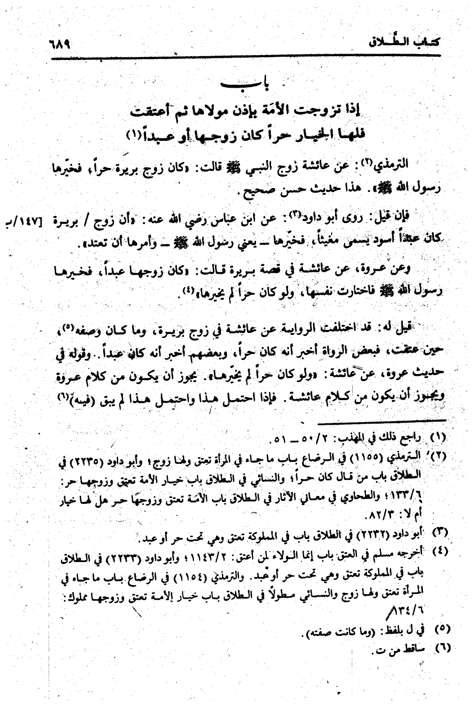 التِّرْمِذِيّ: عَن عَائِشَة زوج النَّبِي [صلى الله عَلَيْهِ وَسلم] قَالَت: " كَانَ زوج بَرِيرَة حرا، فَخَيرهَا رَسُول الله [صلى الله عَلَيْهِ وَسلم] ". هَذَا حَدِيث حسن صَحِيح.