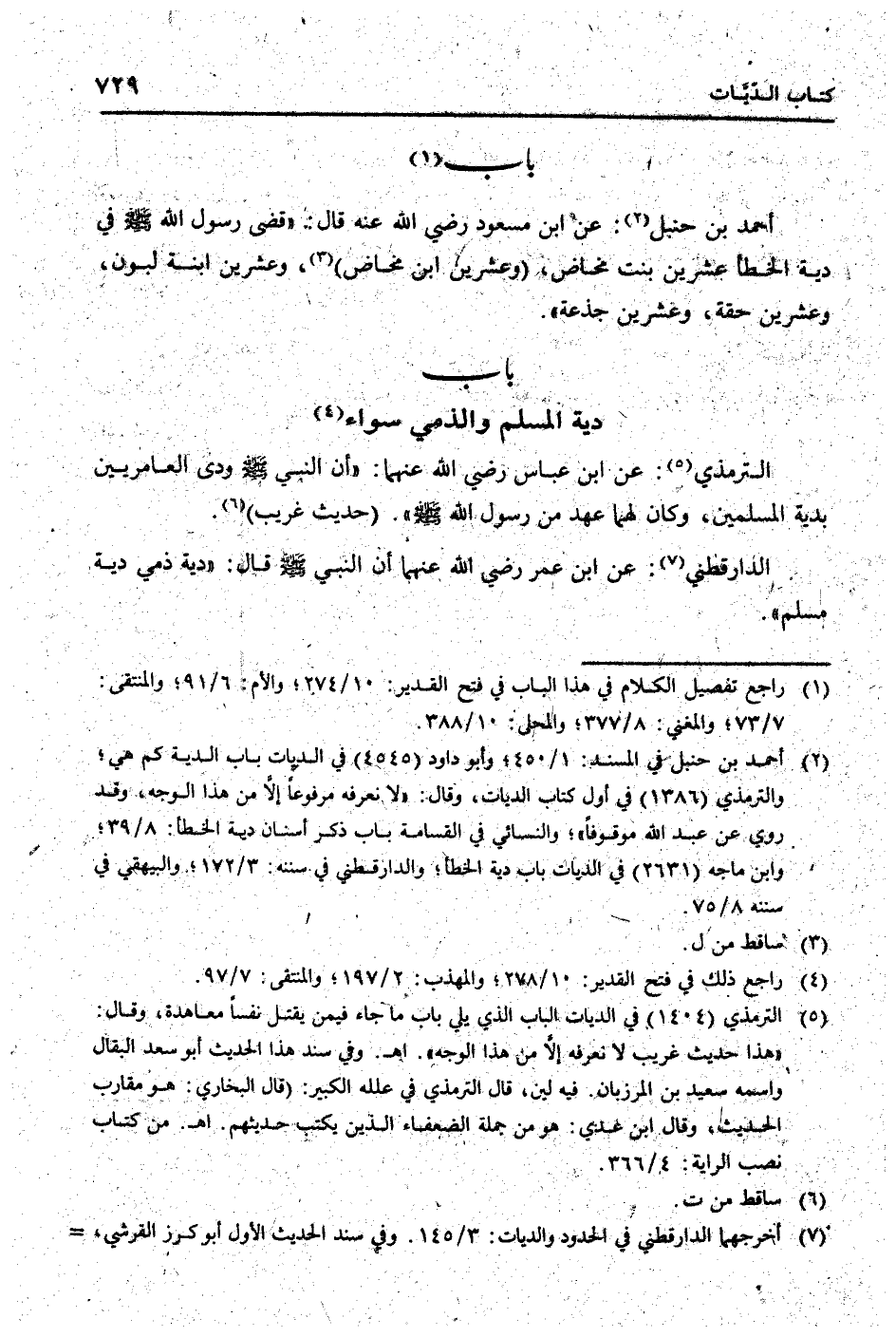 الدَّارَقُطْنِيّ: عَن ابْن عمر رَضِي الله عَنْهُمَا أَن النَّبِي [صلى الله عَلَيْهِ وَسلم] قَالَ: " دِيَة ذمِّي دِيَة مُسلم ".