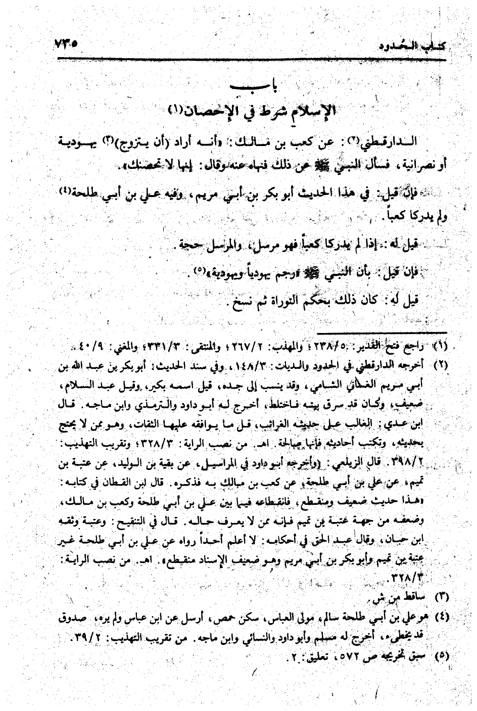 الدَّارَقُطْنِيّ: عَن كَعْب بن مَالك: " أَنه أَرَادَ (أَن يتَزَوَّج) يَهُودِيَّة أَو نَصْرَانِيَّة، فَسَأَلَ النَّبِي [صلى الله عَلَيْهِ وَسلم] عَن ذَلِك فَنَهَاهُ عَنهُ وَقَالَ: إِنَّهَا لَا تحصنك ".
