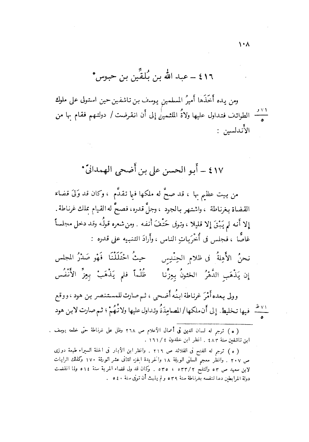 وَولي بعده أَمر غرناطة ابْنه أضحى ثمَّ صَارَت للمستنصر بن هود وَوَقع فِيهَا تَخْلِيط إِلَى أَن ملكهَا المصامدة وتداول ولاتهم ثمَّ صَارَت لِابْنِ هود