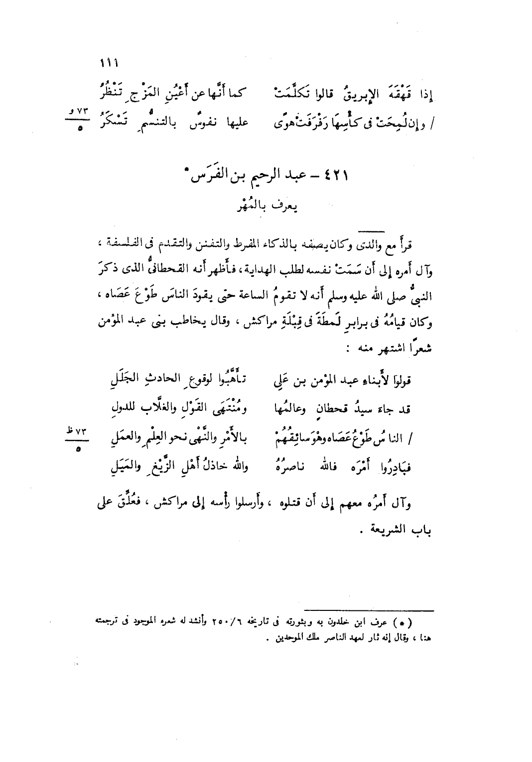 421 - عبد الرَّحِيم بن الْفرس يعرف بِالْمهْرِ