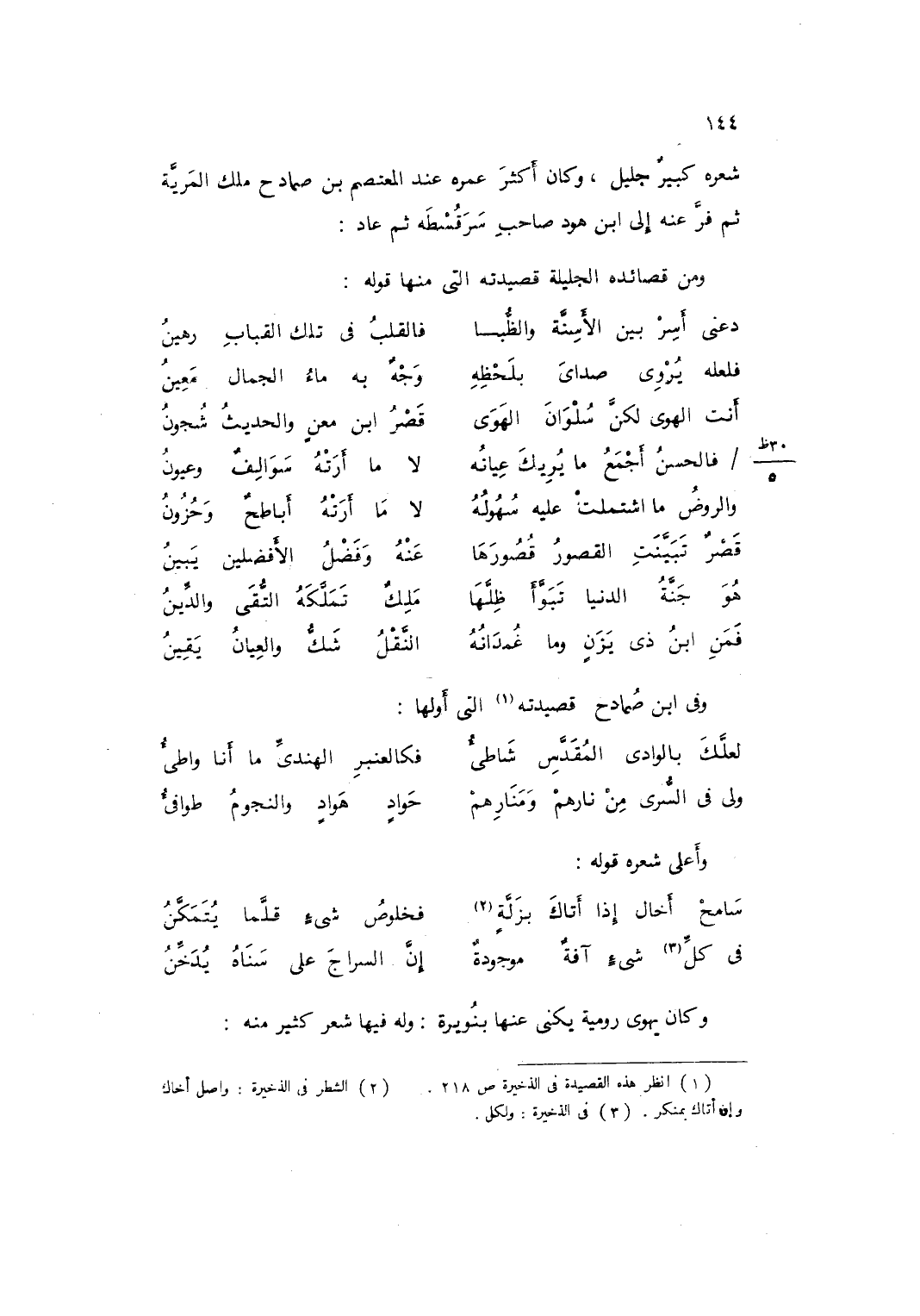 وَفِي ابْن صمادح قصيدته الَّتِي أَولهَا ... لَعَلَّكَ بِالوَادِي المُقَدَّسِّ شَاطِئٌ ... فكالعنبر الْهِنْدِيّ مَا انا واطي