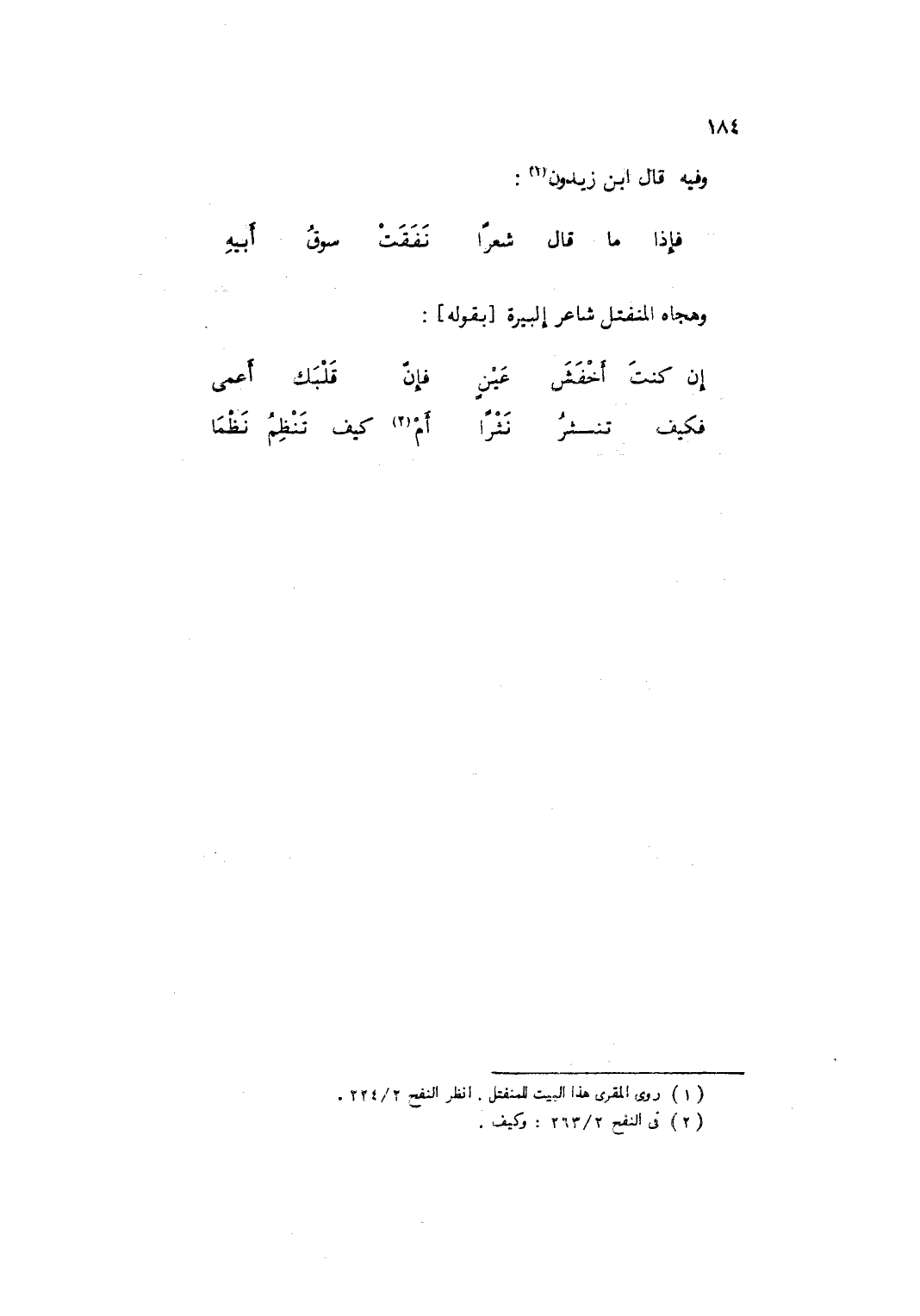 وهجاه المنفتل شَاعِر إلبيرة بقوله ... إِنْ كُنْتَ أَخْفَشَ عَيْنٍ ... فَإِنَّ قَلْبَكَ أَعْمَى