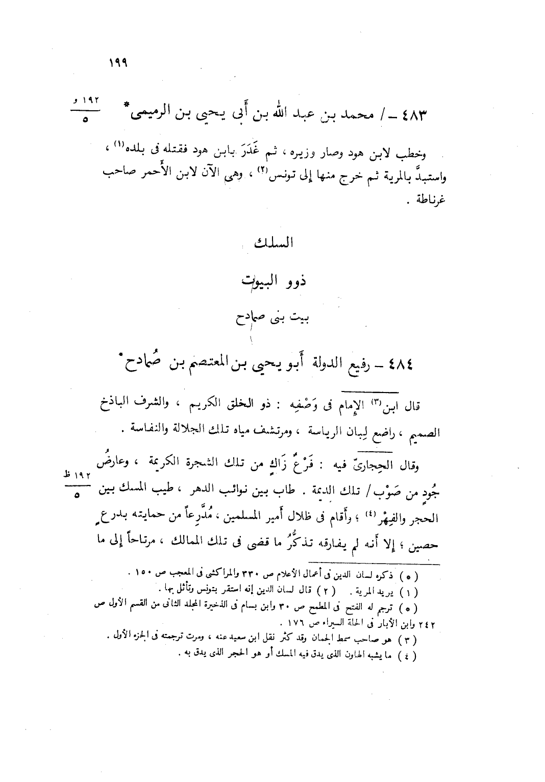 السلك ذَوُو الْبيُوت بَيت بني صمادح