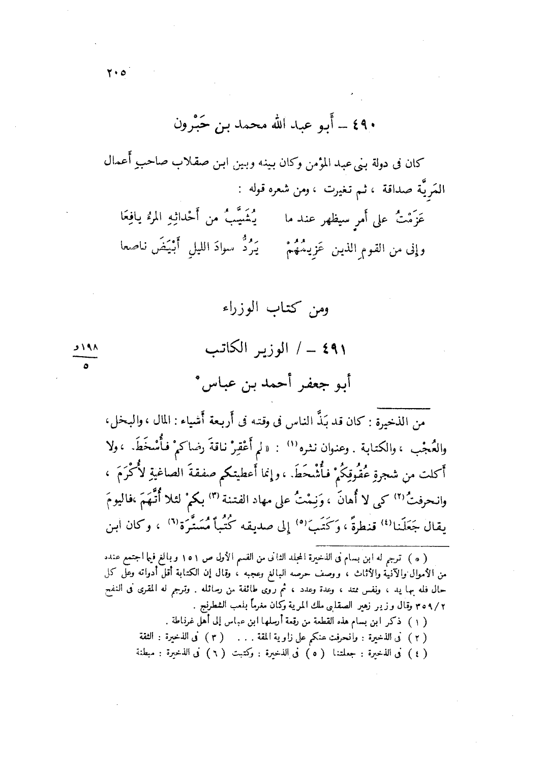 491 - الْوَزير الْكَاتِب أَبُو جَعْفَر أَحْمد بن عَبَّاس
