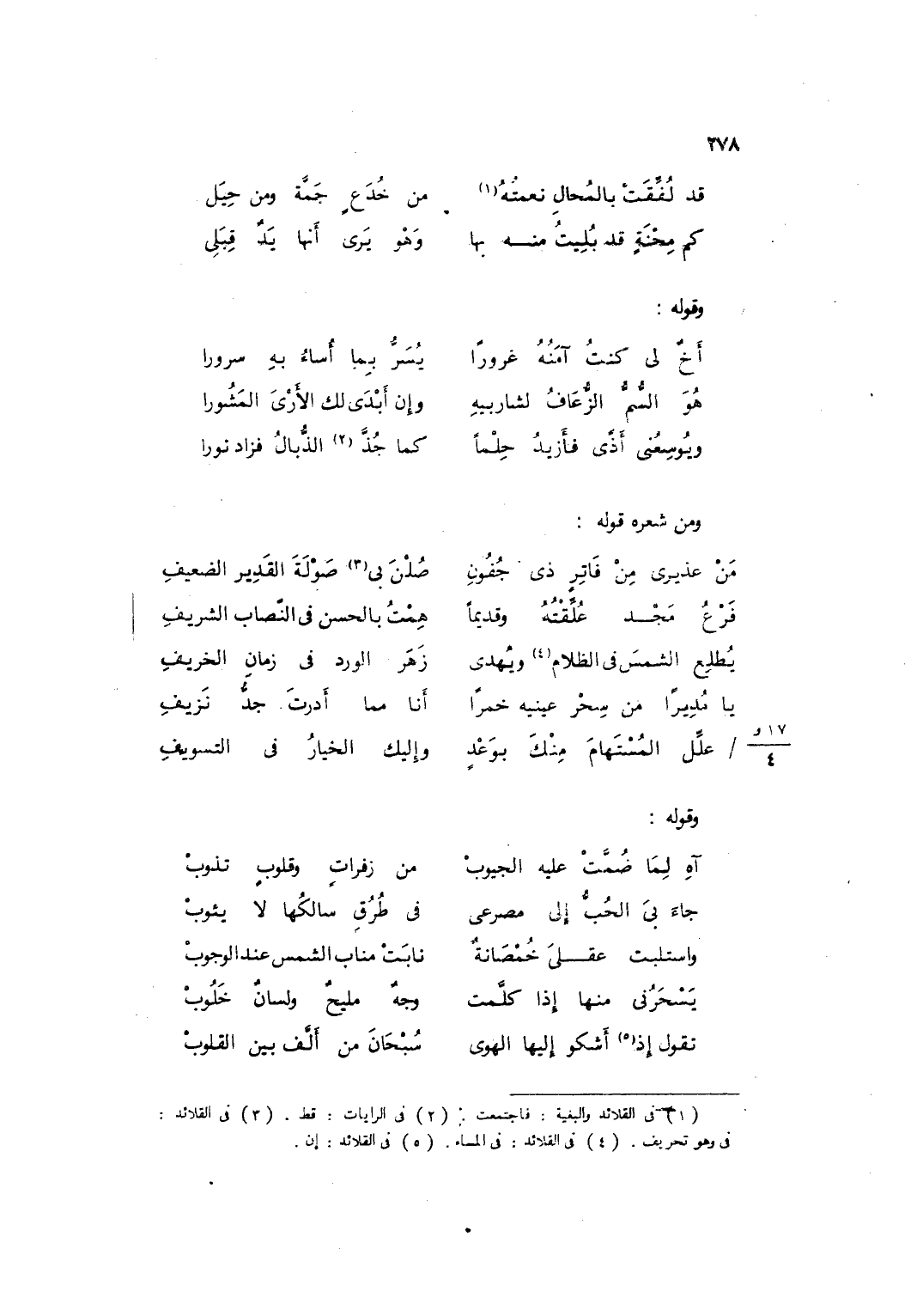 وَمن شعره قَوْله ... مَنْ عَذِيرِي مِنْ فَاتِرٍ ذِي جُفُونِ ... صُلْنَ بِي صَوْلَةَ القَدِيرِ الضَّعِيفِ