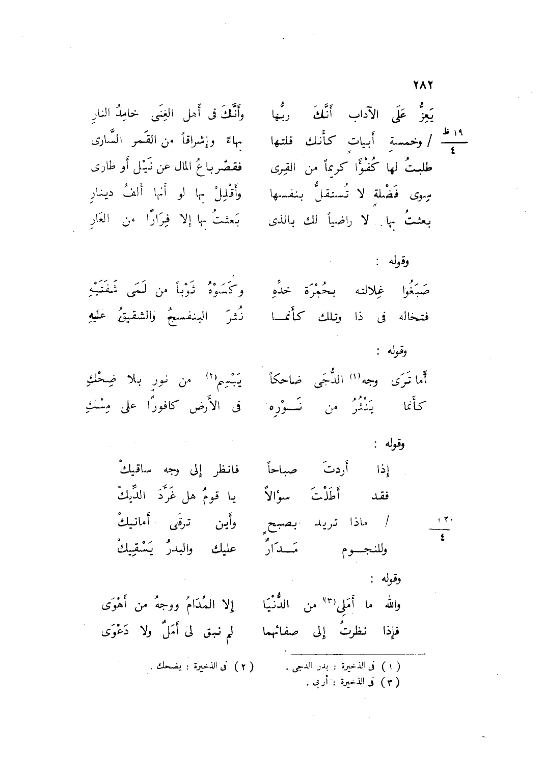وَقَوله ... وَاللهِ مَا أَمَلِي مِنَ الدُّنْيَا ... إِلاَّ المُدَامُ وَوَجْهُ مَنْ أَهْوَى