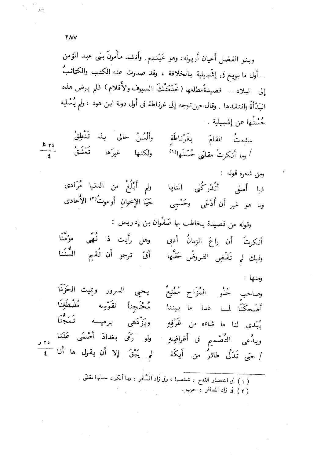 وَقَوله من قصيدة يُخَاطب بهَا صَفْوَان بن إِدْرِيس ... أَنْكَرْتَ أَنْ رَاعَ الزَّمَانُ أَدَبِي ... وَهَلْ رَأَيْتَ ذَا نُهَىً مُؤَمَّنَا