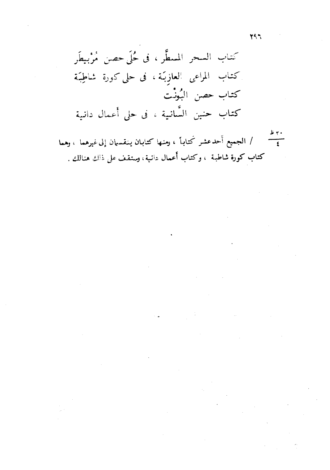 كتاب السحر المسطر ف يحلى حصن مربيطر كتاب المراعي العازبة فِي حلى كورة شاطبة كتاب حصن البونت كتاب حنين السانية فِي حلى أَعمال دانية