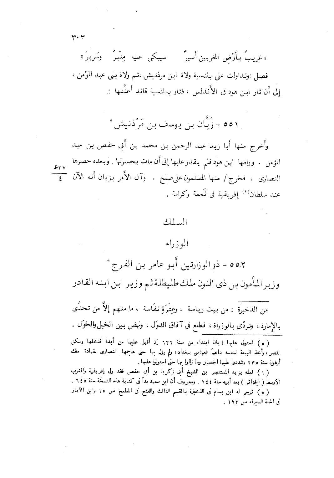 وَزِير الْمَأْمُون بن ذى النُّون ملك طليطلة ثمَّ وَزِير ابْن ابْنه الْقَادِر من الذَّخِيرَة من بَيت رياسة وعترة نفاسة مَا مِنْهُم إِلَّا من تحدى بالإمارة وتردى بالوزراة فطلع فِي آفَاق الدول ونهض بَين الْخَيل والخول