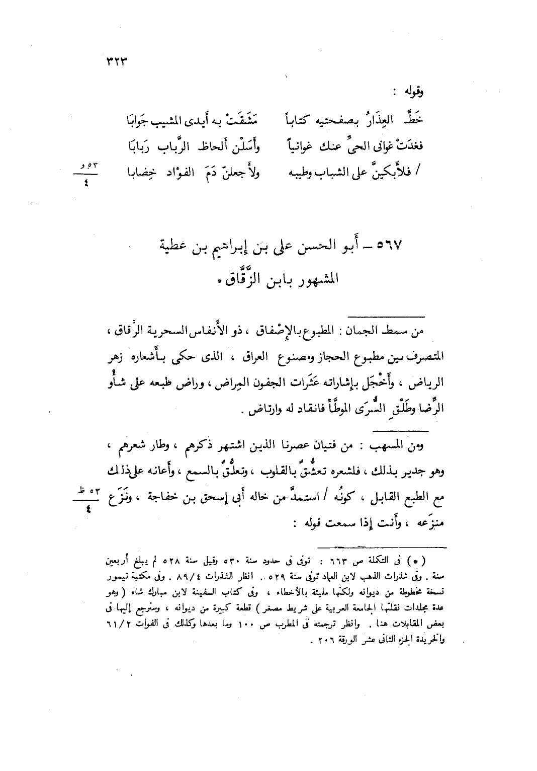 567 - أَبُو الْحسن عَليّ بن إِبْرَاهِيم بن عَطِيَّة الْمَشْهُور بِابْن الزَّقَّاق