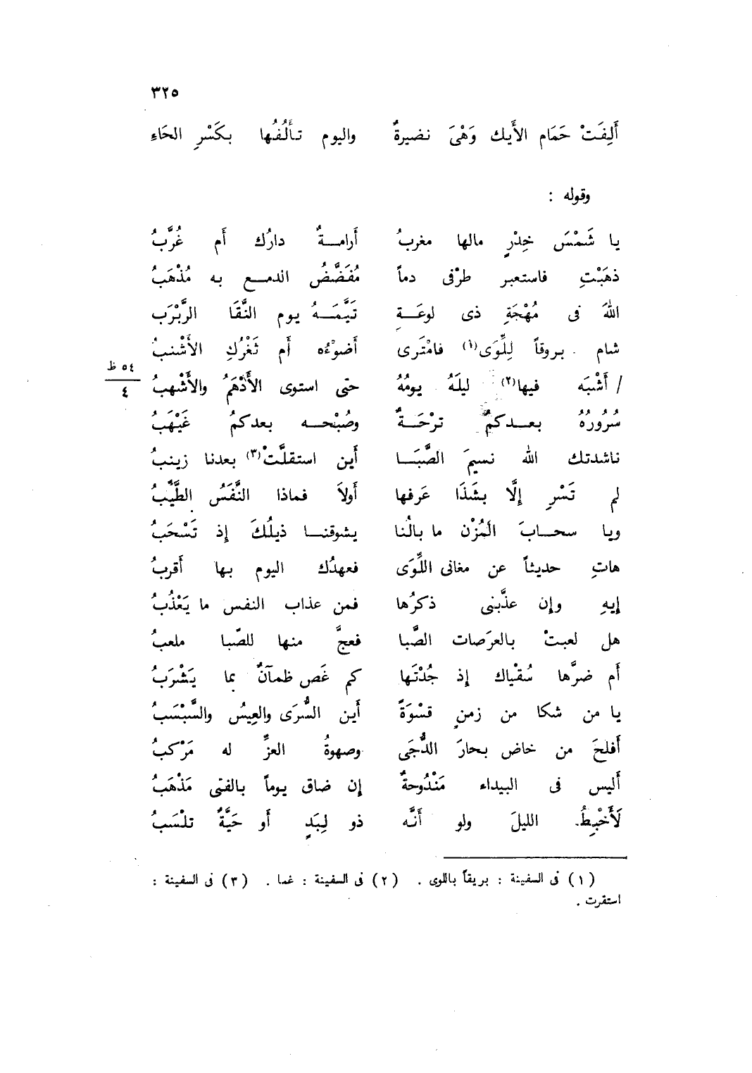 وَقَوله ... يَا شمس خدر مَالهَا مغربُ ... أرامةٌ دارُك أم غُرَّبُ