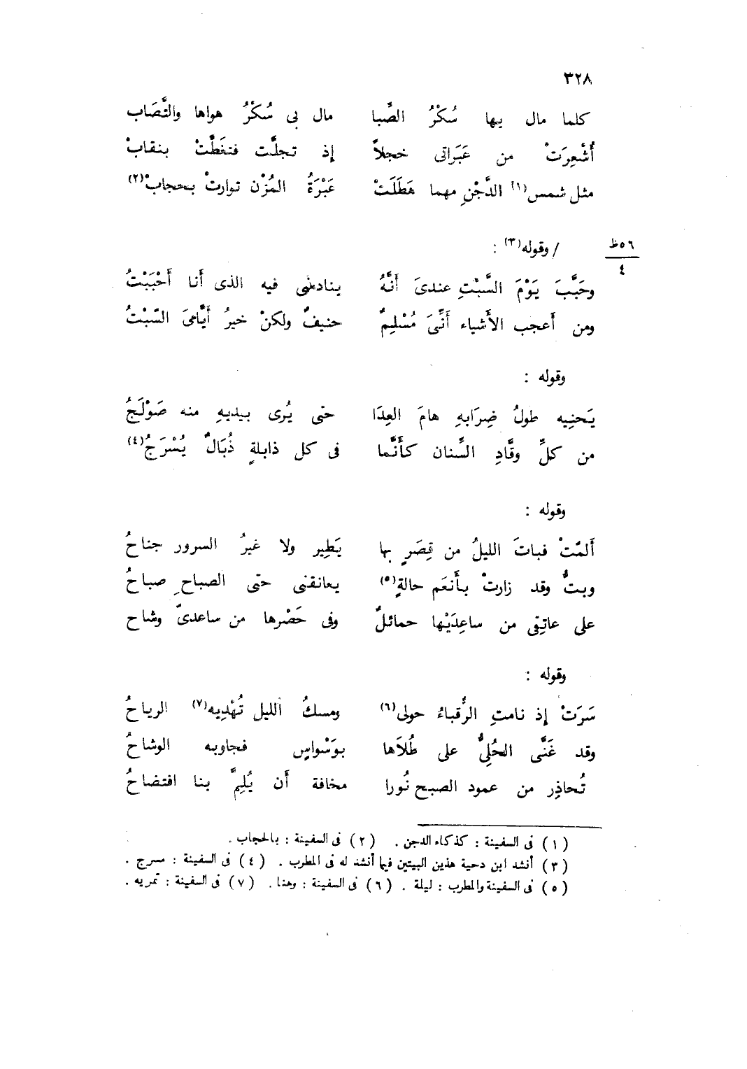 وَقَوله ... ألمّتْ فباتَ الليلُ من قِصَرٍ بهَا ... يطيرُ وَلَا غيرُ السرُور جناحُ