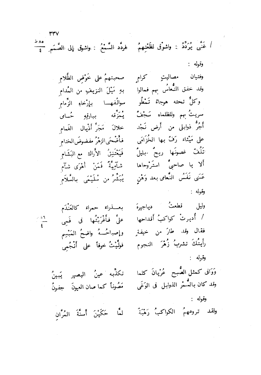 .. غَنَّى يُرَدِّدُ واشوْقي لظَعْنِهِمُ ... فردَّد السَّمْعَ واشوقي إِلَى الصَّمَمِ ...