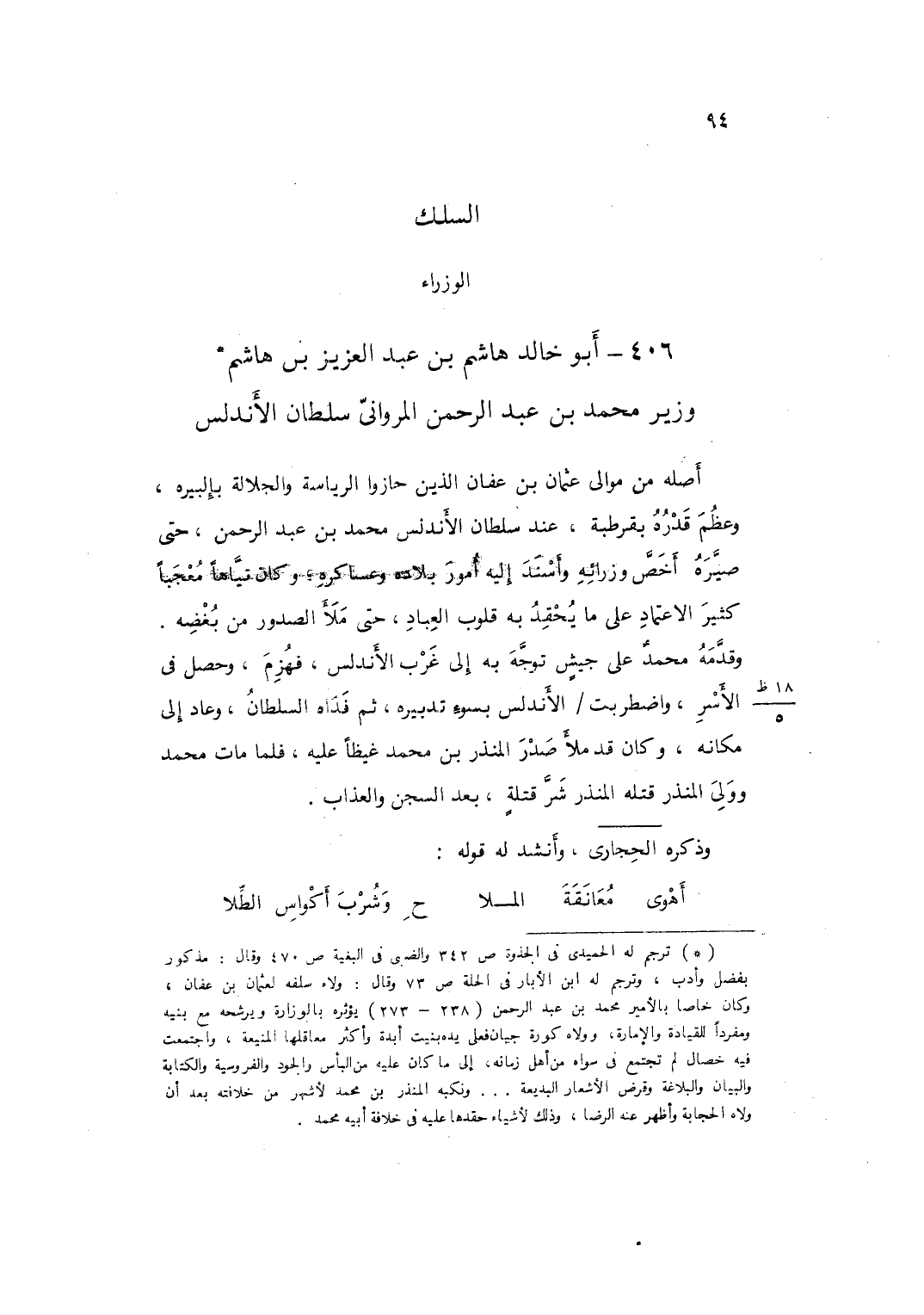 406 - أَبُو خَالِد هَاشم بن عبد الْعَزِيز بن هَاشم وَزِير مُحَمَّد بن عبد الرَّحْمَن المرواني سُلْطَان الأندلس