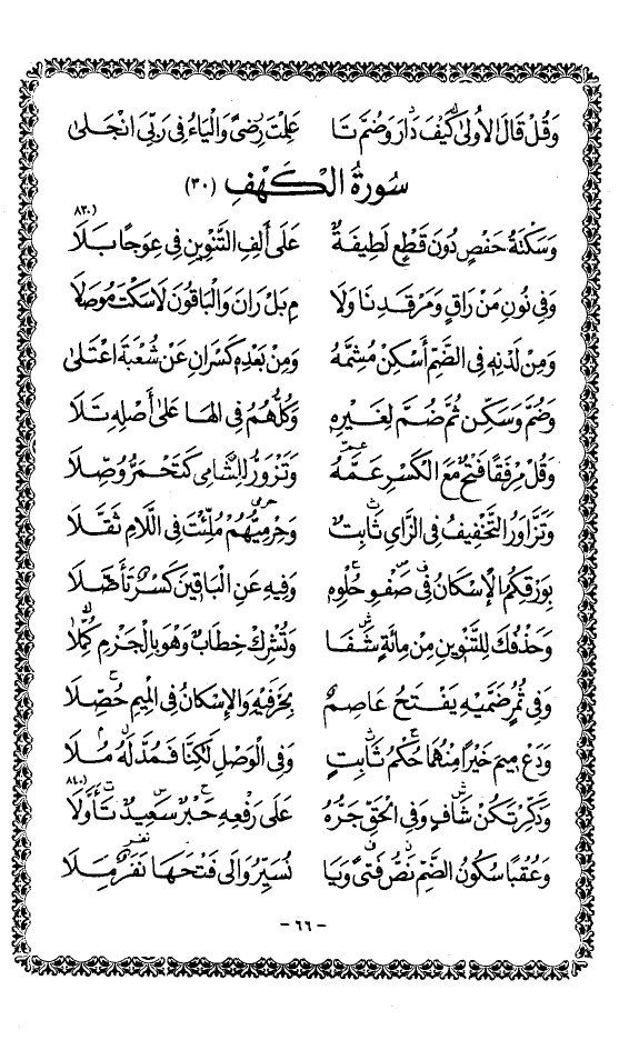 830 - وَسَكْتَةُ حَفْصٍ دُونَ قَطْعٍ لَطِيفَةٌ ... عَلَى أَلِفِ التَّنْوِينِ فِي عِوَجاً بَلَا