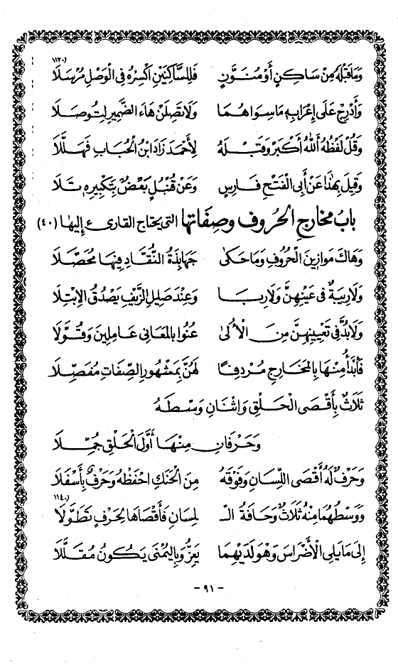 بَابُ مَخَارِجِ الْحُرُوفِ وَصِفَاتِهَا الَّتِي يَحْتَاجُ الْقَارِئُ إِلَيْهَا (40)