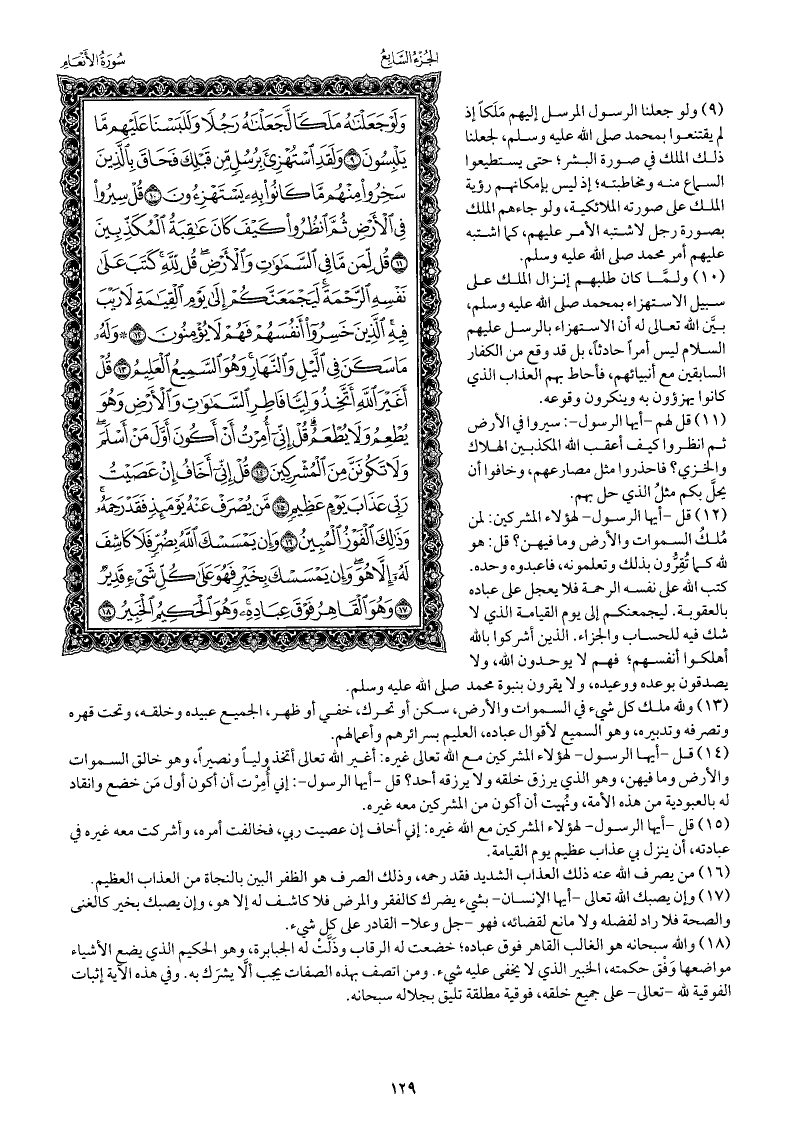 ولو جعلنا الرسول المرسل إليهم مَلَكًا إذ لم يقتنعوا بمحمد صلى الله عليه وسلم، لجعلنا ذلك الملك في صورة البشر، حتى يستطيعوا السماع منه ومخاطبته; إذ ليس بإمكانهم رؤية الملك على صورته الملائكية، ولو جاءهم الملك بصورة رجل لاشتبه الأمر عليهم، كما اشتبه عليهم أمر محمد صلى الله عليه وسلم.