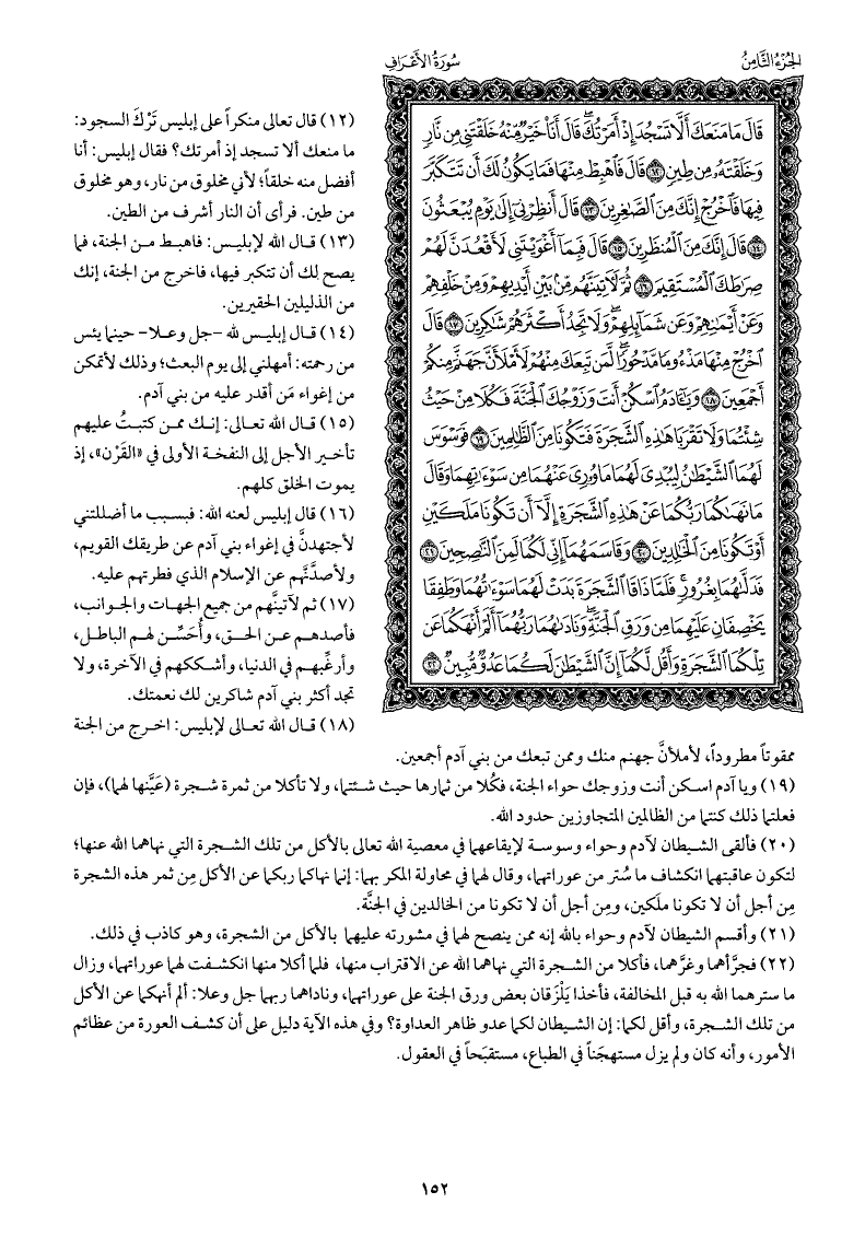 فجرَّأهما وغرَّهما، فأكلا من الشجرة التي نهاهما الله عن الاقتراب منها، فلما أكلا منها انكشفت لهما عوراتهما، وزال ما سترهما الله به قبل المخالفة، فأخذا يلزقان بعض ورق الجنة على عوراتهما، وناداهما ربهما جل وعلا ألم أنهكما عن الأكل من تلك الشجرة، وأقل لكما: إن الشيطان لكما عدو ظاهر العداوة؟ وفي هذه الآية دليل على أن كشف العورة من عظائم الأمور، وأنه كان ولم يزل مستهجَنًا في الطباع، مستقبَحًا في العقول.