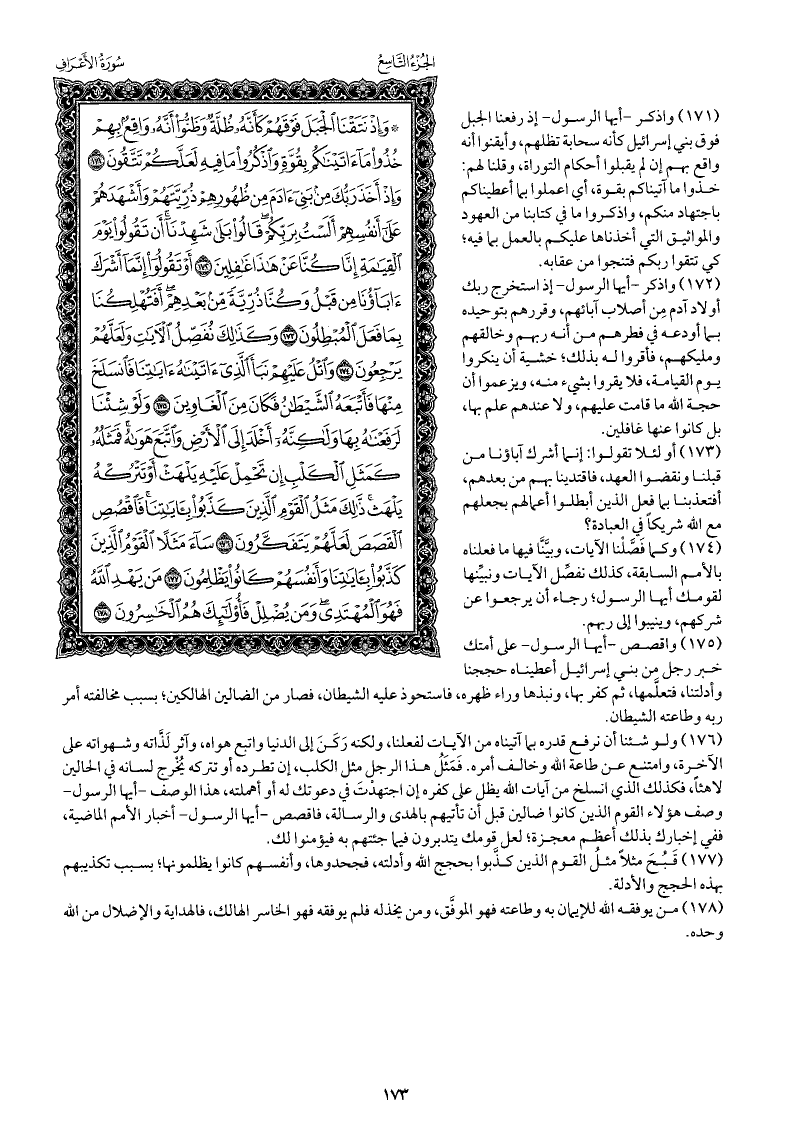واذكر -أيها الرسول- إذ استخرج ربك أولاد آدم مِن أصلاب آبائهم، وقررهم بتوحيده بما أودعه في فطرهم من أنه ربهم وخالقهم ومليكهم، فأقروا له بذلك، خشية أن ينكروا يوم القيامة، فلا يقروا بشيء منه، ويزعموا أن حجة الله ما قامت عليهم، ولا عندهم علم بها، بل كانوا عنها غافلين.