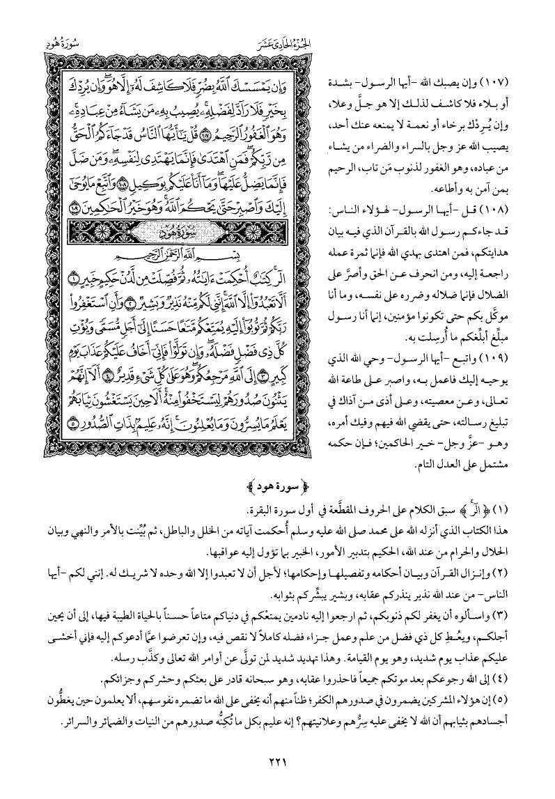 وإنزال القرآن وبيان أحكامه وتفصيلها وإحكامها; لأجل أن لا تعبدوا إلا الله وحده لا شريك له. إنني لكم -أيها الناس- من عند الله نذير ينذركم عقابه، وبشير يبشِّركم بثوابه.