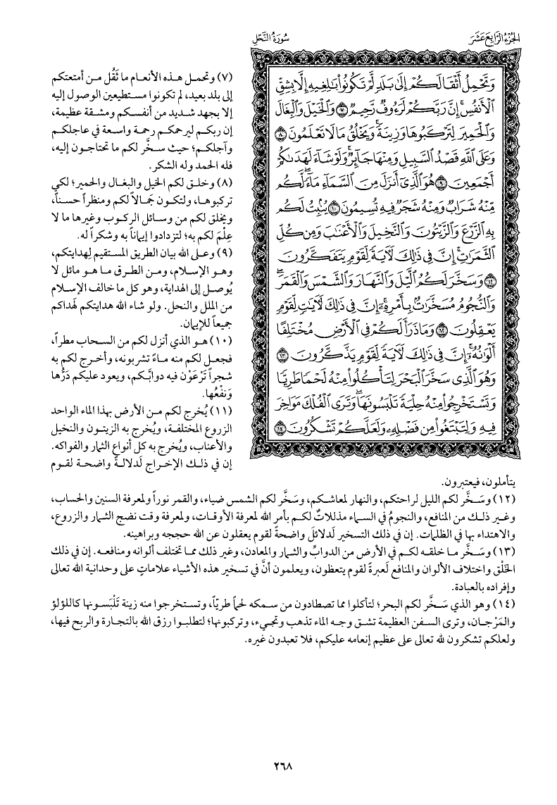 وهو الذي سخَّر لكم البحر; لتأكلوا مما تصطادون من سمكه لحمًا طريًا، وتستخرجوا منه زينة تَلْبَسونها كاللؤلؤ والمرجان، وترى السفن العظيمة تشق وجه الماء تذهب وتجيء، وتركبونها; لتطلبوا رزق الله بالتجارة والربح فيها، ولعلكم تشكرون لله تعالى على عظيم إنعامه عليكم، فلا تعبدون غيره.