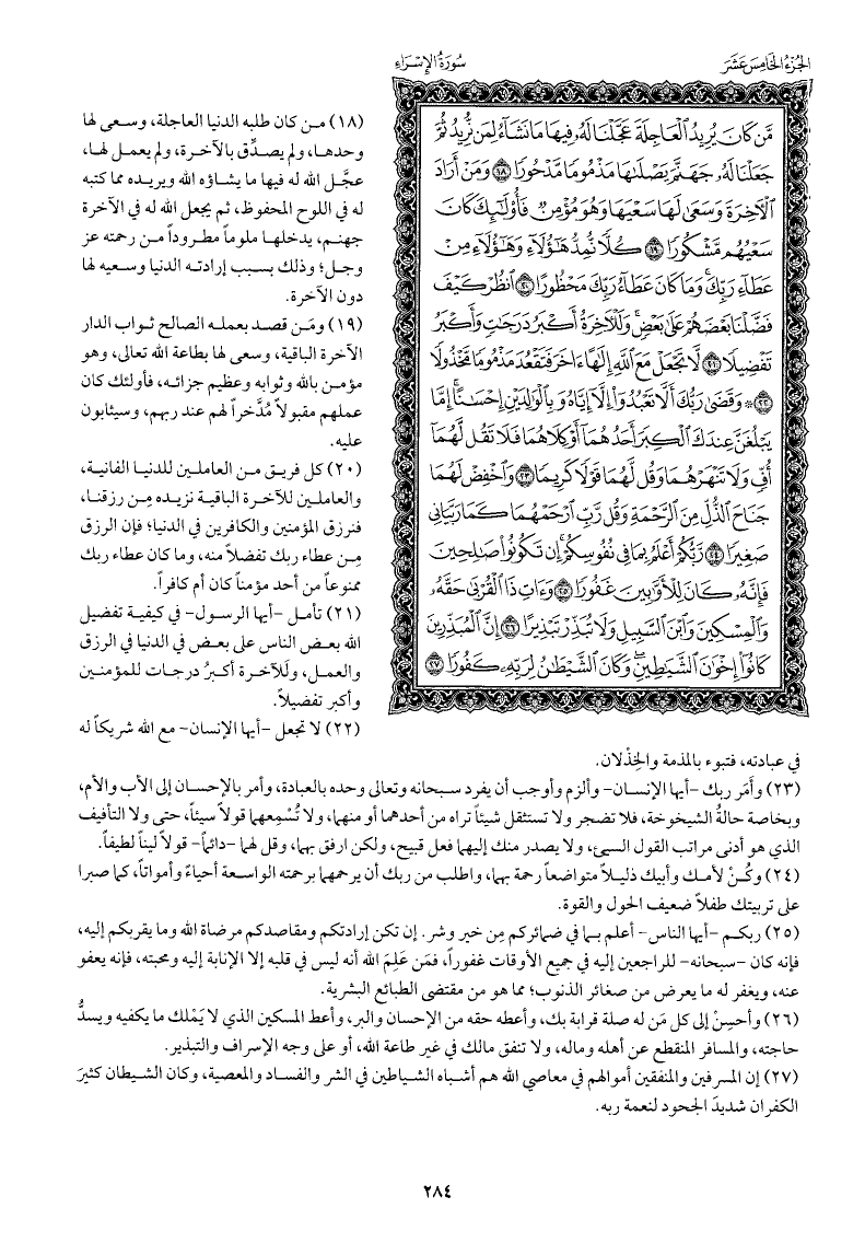 وأحسِنْ إلى كل مَن له صلة قرابة بك، وأعطه حقه من الإحسان والبر، وأعط المسكين الذي لا يملك ما يكفيه ويسد حاجته، والمسافر المنقطع عن أهله وماله، ولا تنفق مالك في غير طاعة الله، أو على وجه الإسراف والتبذير.