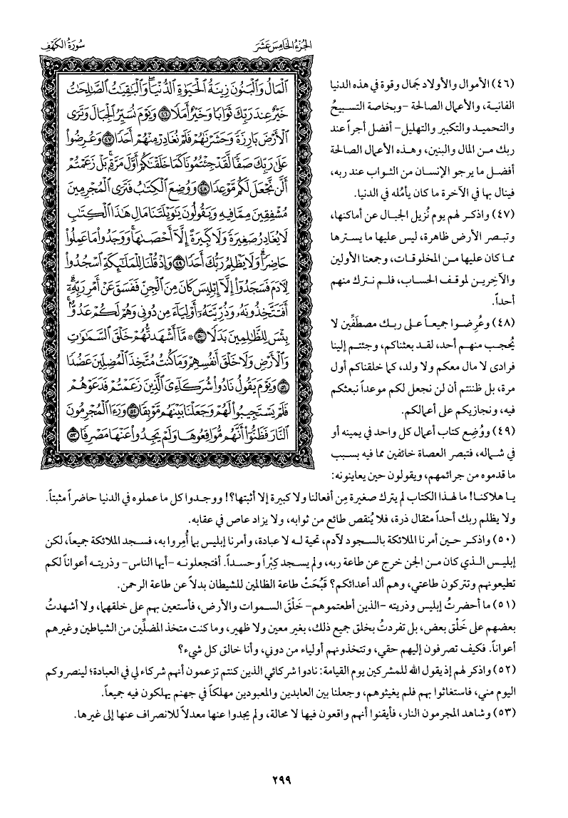 الأموال والأولاد جَمال وقوة في هذه الدنيا الفانية، والأعمال الصالحة -وبخاصة التسبيحُ والتحميد والتكبير والتهليل- أفضل أجرًا عند ربك من المال والبنين، وهذه الأعمال الصالحة أفضل ما يرجو الإنسان من الثواب عند ربه، فينال بها في الآخرة ما كان يأمُله في الدنيا.