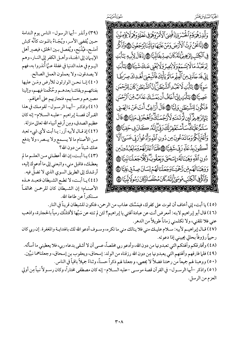 قال إبراهيم لأبيه: سلام عليك مني فلا ينالك مني ما تكره، وسوف أدعو الله لك بالهداية والمغفرة. إن ربي كان رحيمًا رؤوفًا بحالي يجيبني إذا دعوته.