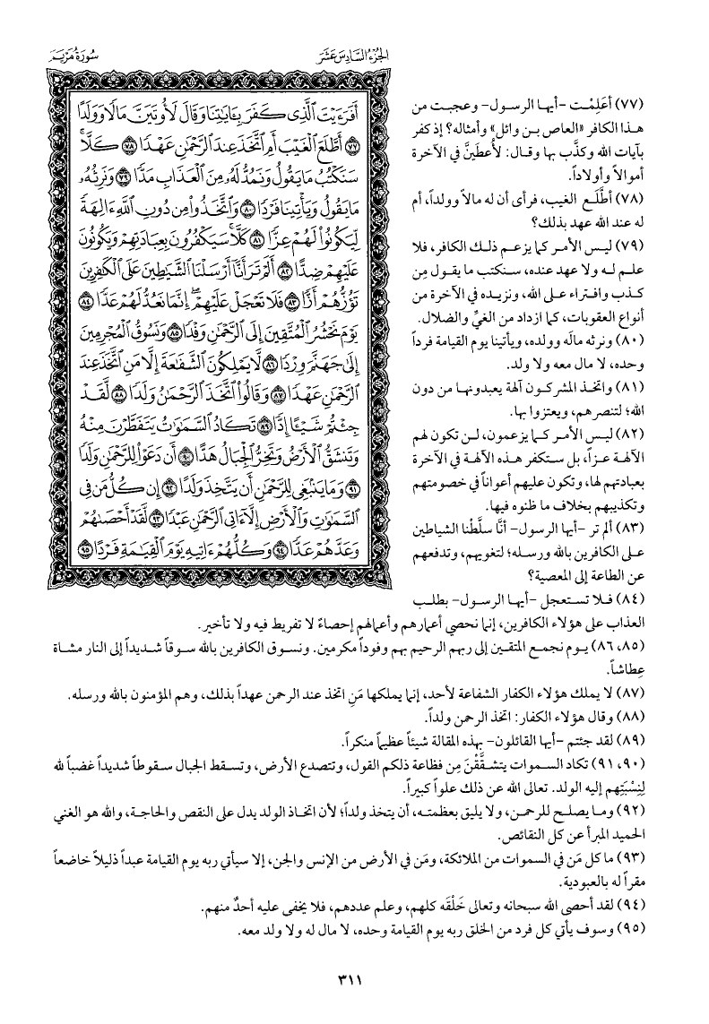 لا يملك هؤلاء الكفار الشفاعة لأحد، إنما يملكها مَنِ اتخذ عند الرحمن عهدًا بذلك، وهم المؤمنون بالله ورسله.